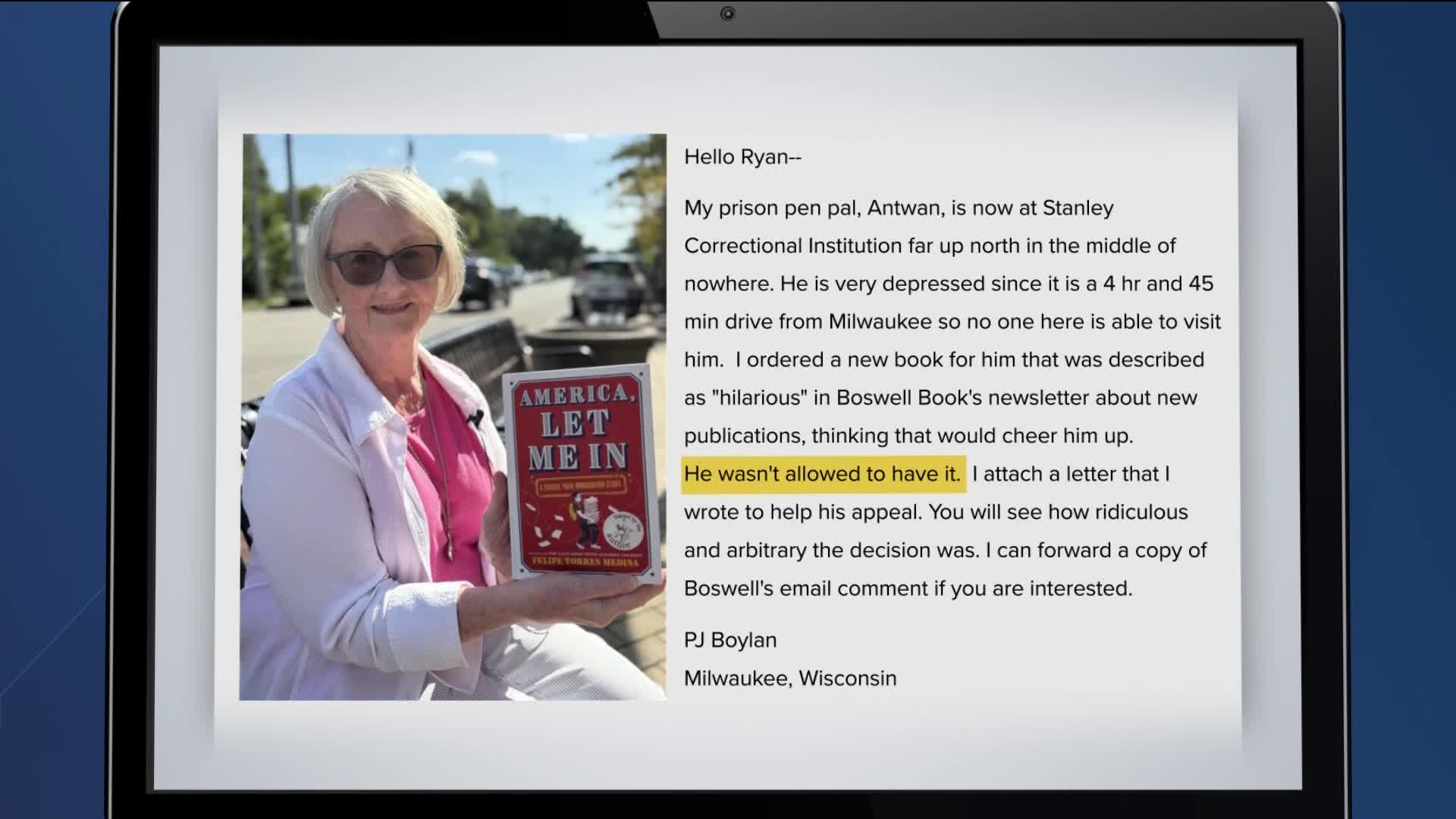 MILWAUKEE — A Wisconsin woman is speaking out after a state prison warden repeatedly refused to allow a book she purchased as a gift to reach an inmate, despite the book being shipped from an authorized vendor and later testing negative for illegal substances.