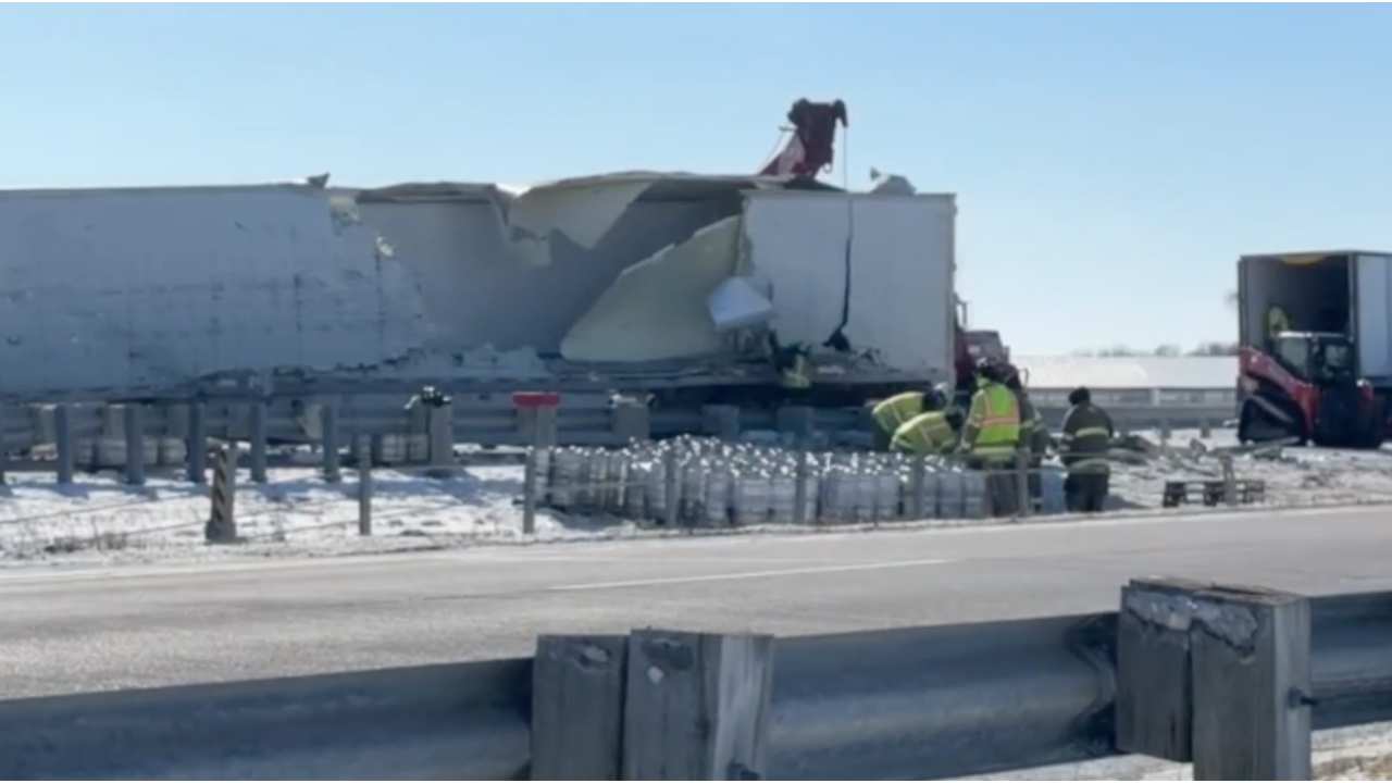 TOWN OF CHESTER, Wis. — A semi-truck crash closed northbound lanes of U.S. 151 at State Highway 26 in the Town of Chester Wednesday morning as crews worked to offload what appeared to be several beer kegs from the truck, which had overturned.