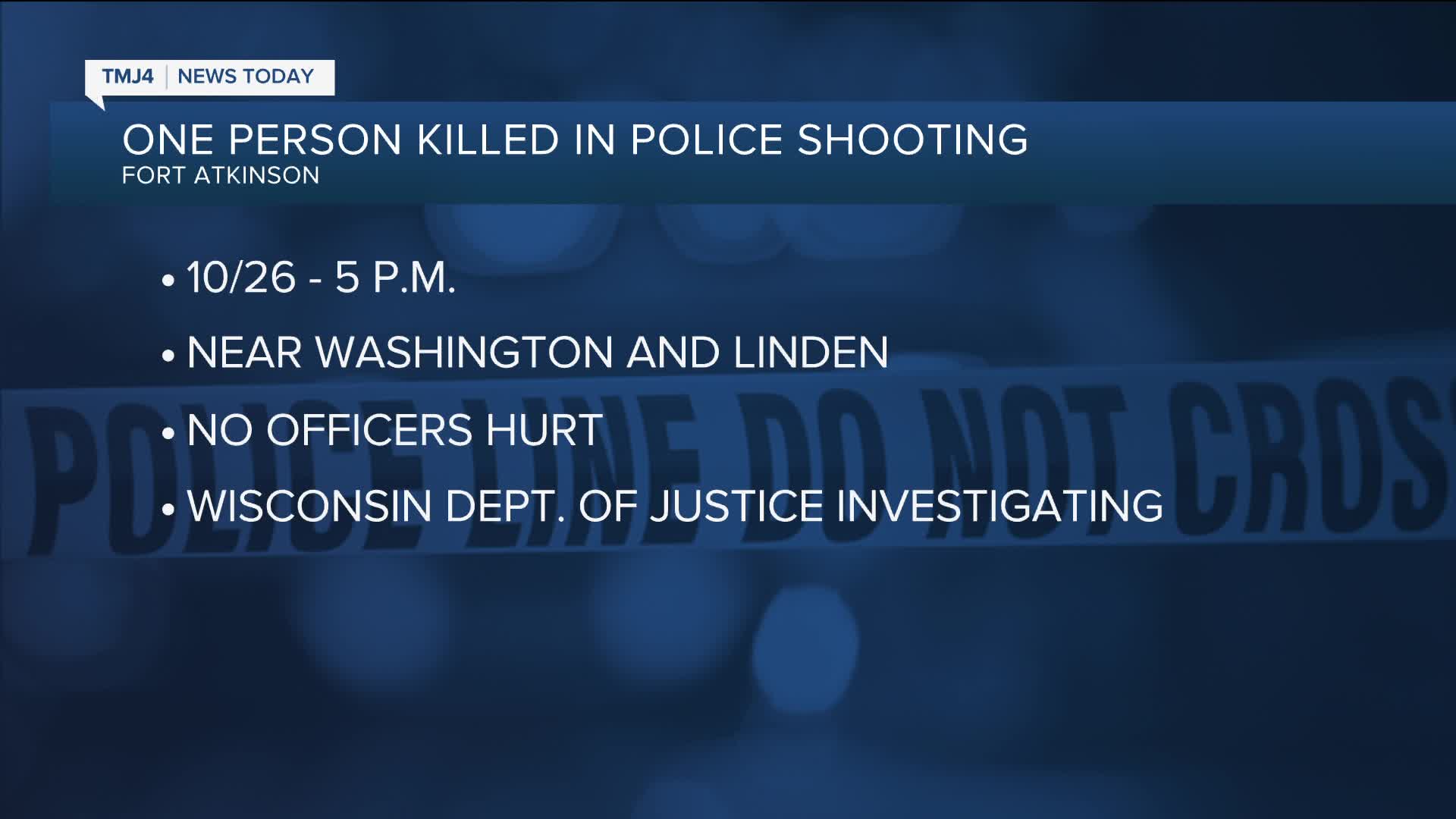 CITY OF FORT ATKINSON, Wis. — One person was shot and killed by a Fort Atkinson police officer on Sunday night.