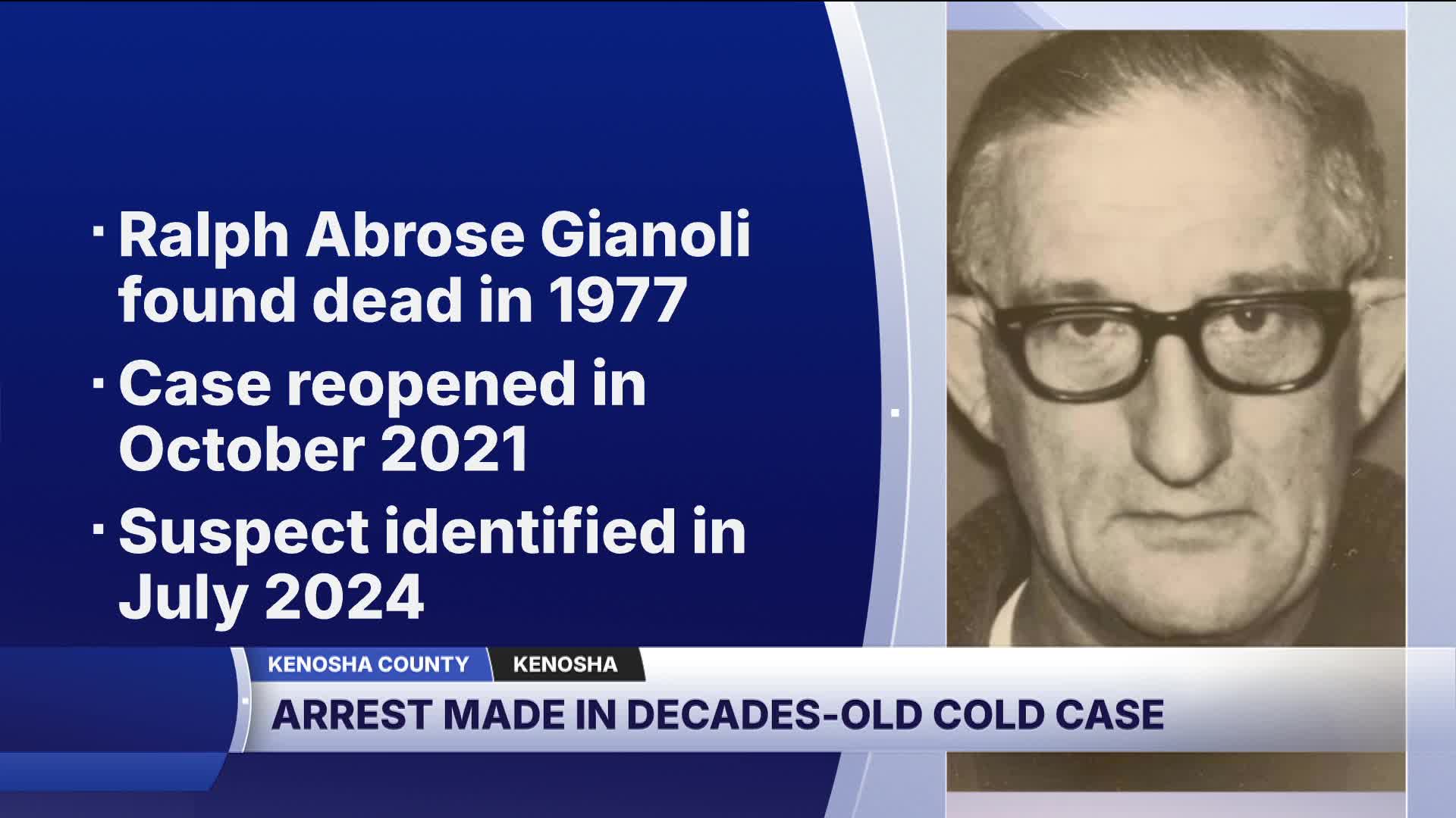 KENOSHA — Nearly 50 years after Ralph Gianoli was found murdered in his Kenosha home — his family finally has an answer.