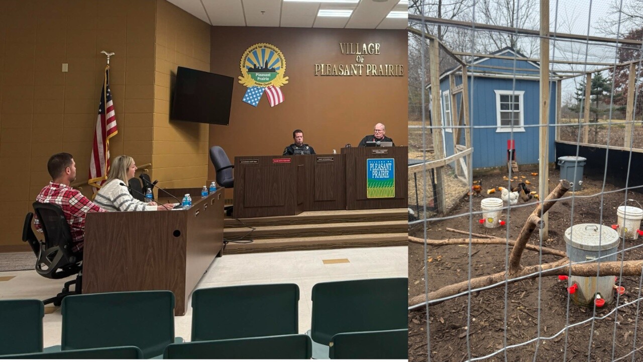 PLEASANT PRAIRIE, Wis. — Randy White and Courtney Breit made their case in Pleasant Prairie Municipal Court Wednesday morning against citations issued by the village for keeping 15 chickens on their residential property.