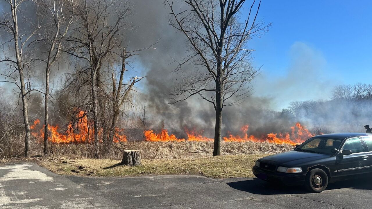 BRISTOL, Wis. – A brush fire burned 40 to 50 acres in the Village of Bristol Monday afternoon, coming within feet of homes in a neighborhood near 214th Avenue.