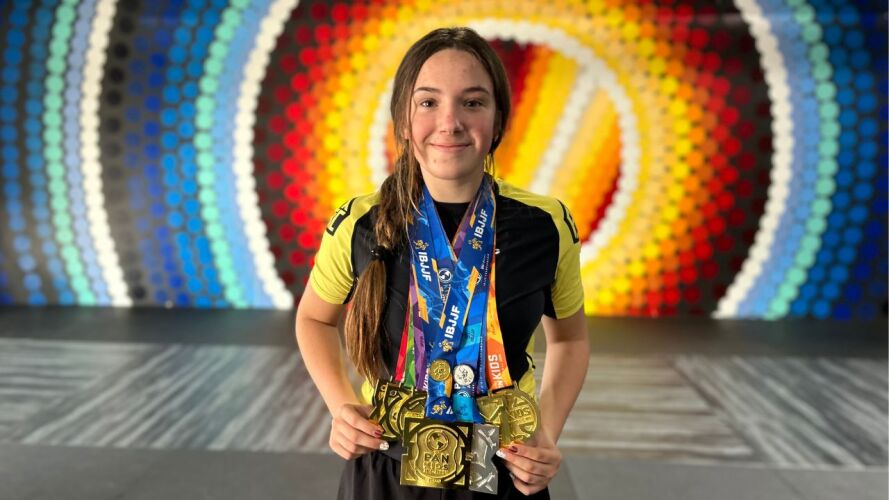 In just over a year, Emily has captured multiple gold medals at IBJJF tournaments — including Nationals and Pan Ams — earning recognition as one of the youngest athletes in her bracket.