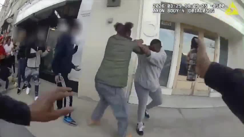 Footage shows officers deploying what appears to be pepper spray on groups of youths fighting. One video shows officers chasing a suspect who made motions as if he was going to fight an officer who pushed him back from an arrest in progress.