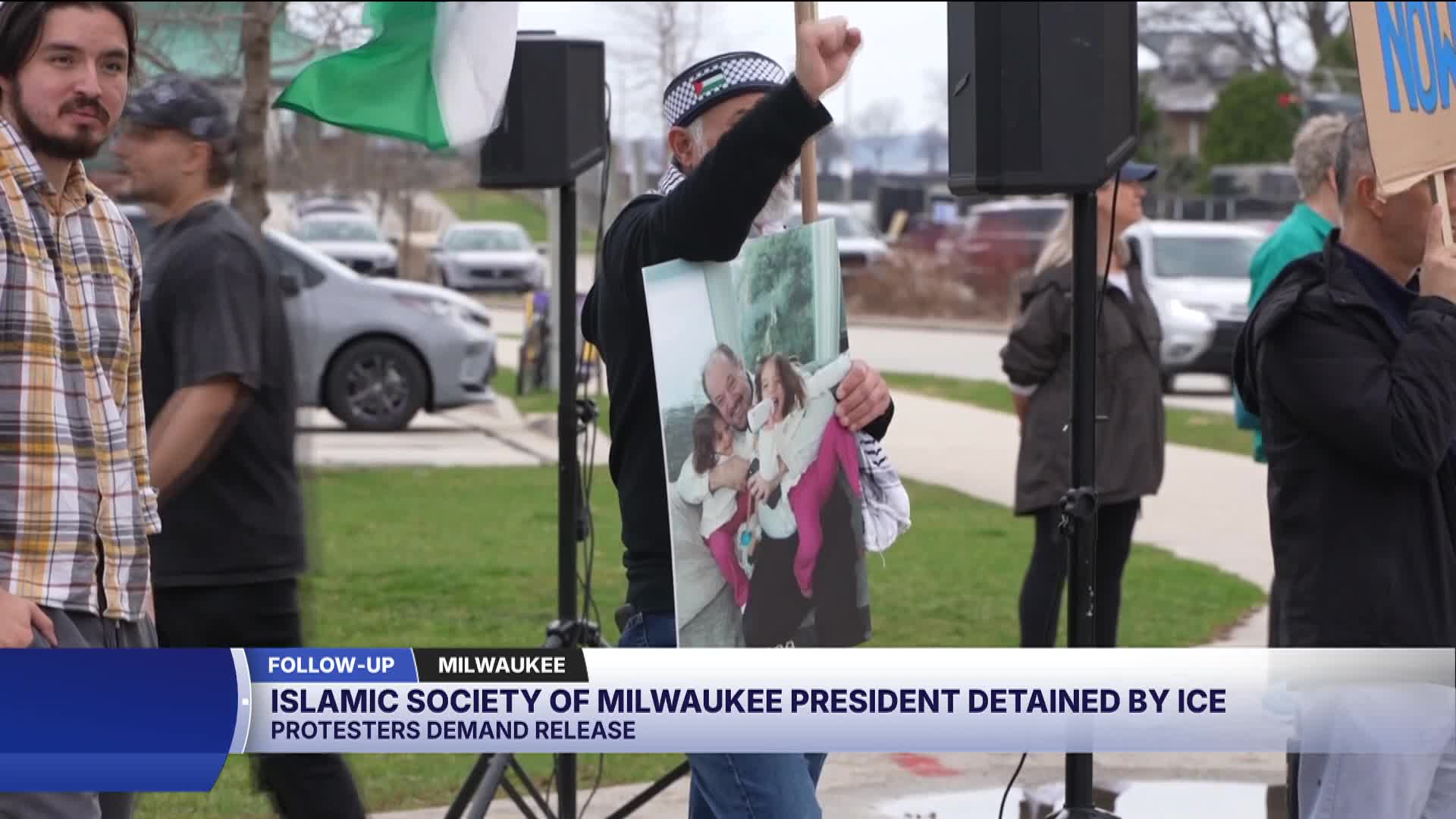 MILWAUKEE — Protesters gathered on Milwaukee’s East Side this afternoon, calling for the release of Salah Sarsour, who was detained by federal immigration agents earlier this month.