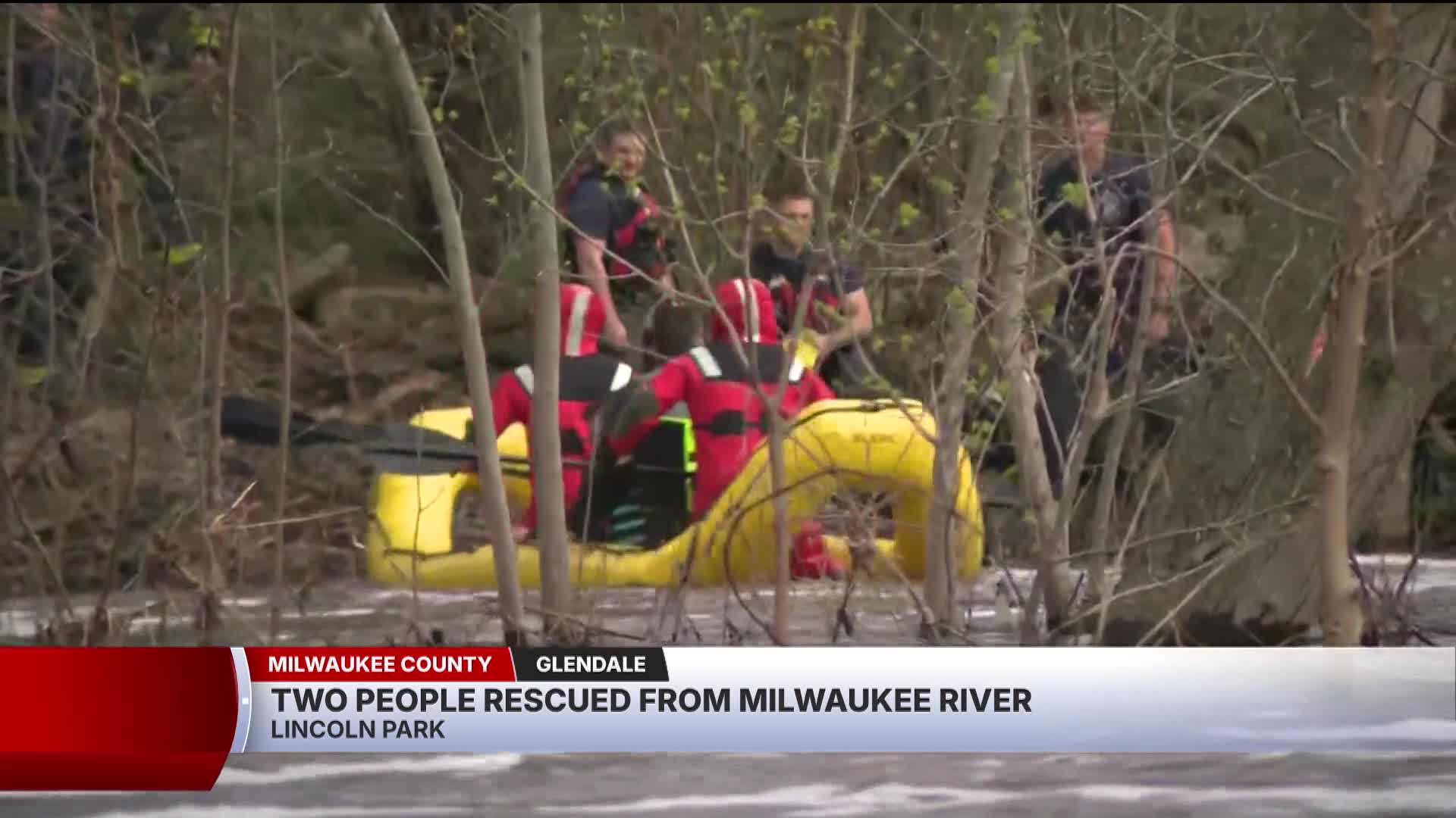 GLENDALE — North Shore Fire and Rescue says first responders rescued two people from the Milwaukee River near Kletzsch Park Sunday afternoon.