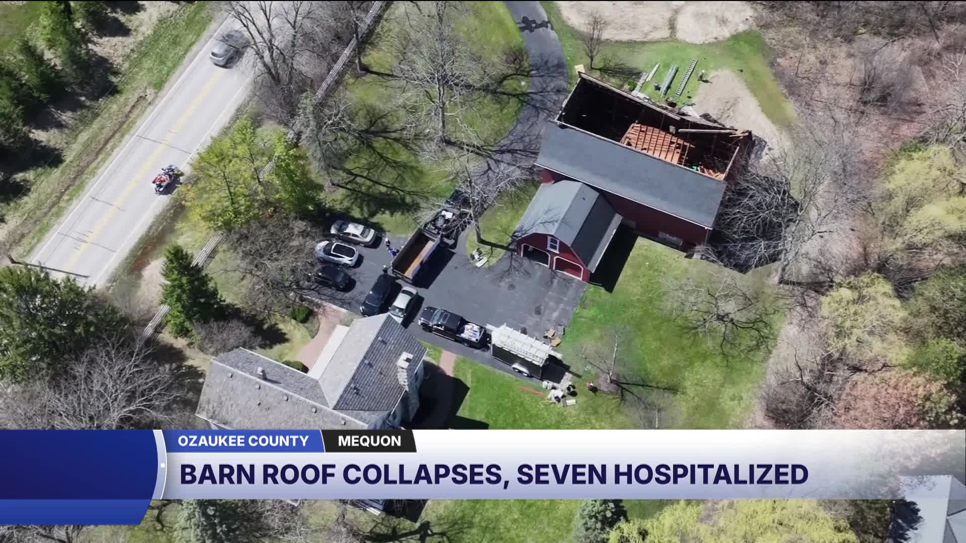 On Monday morning, emergency crews responded to a barn roof collapse in Mequon that left seven people injured.