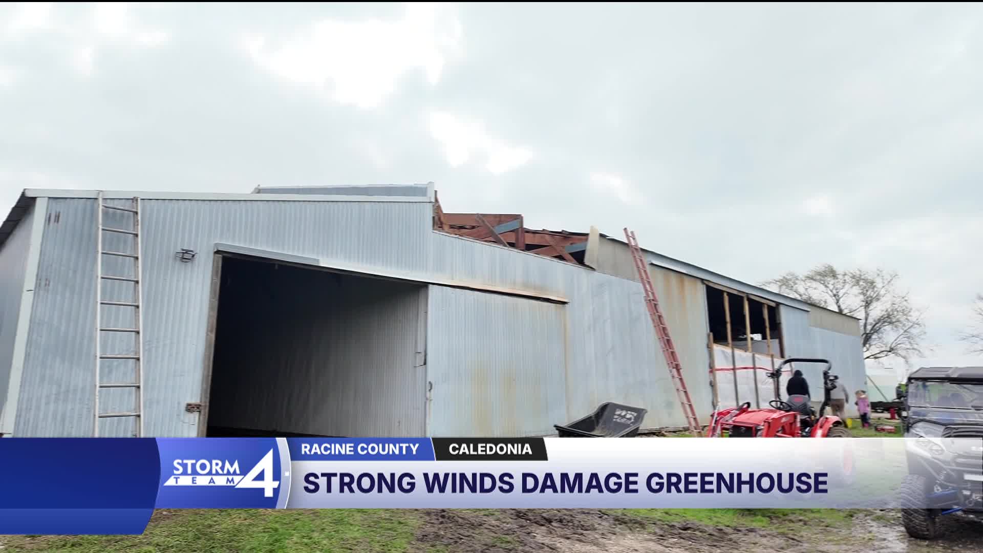 The National Weather Service confirmed a tornado touched down in Racine County, bringing downburst winds that destroyed a greenhouse and toppled trees, including a massive tree that fell on a house at L and L Farms and Greenhouse.