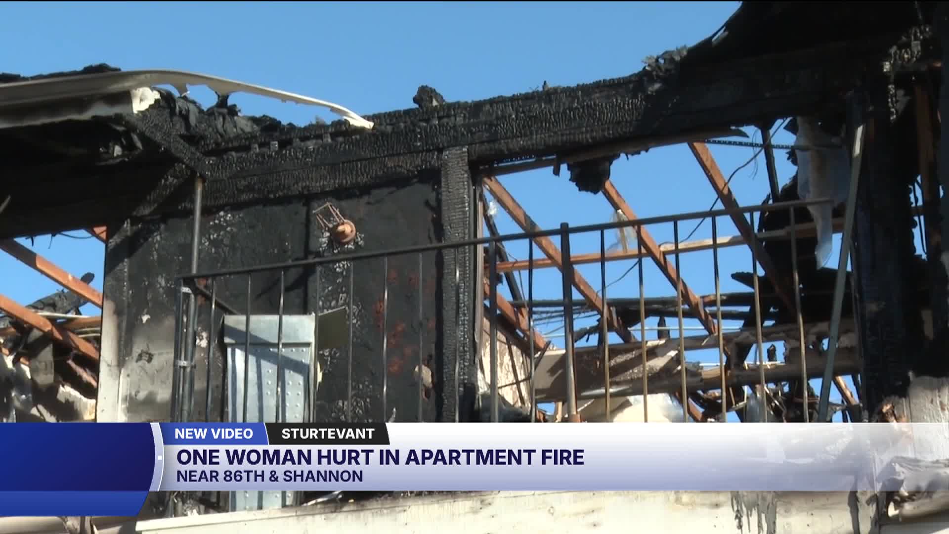 STURTEVANT — A 64-year-old woman was injured and about two dozen residents were displaced after a fire broke out at a 16-unit apartment building in Sturtevant late Wednesday night.