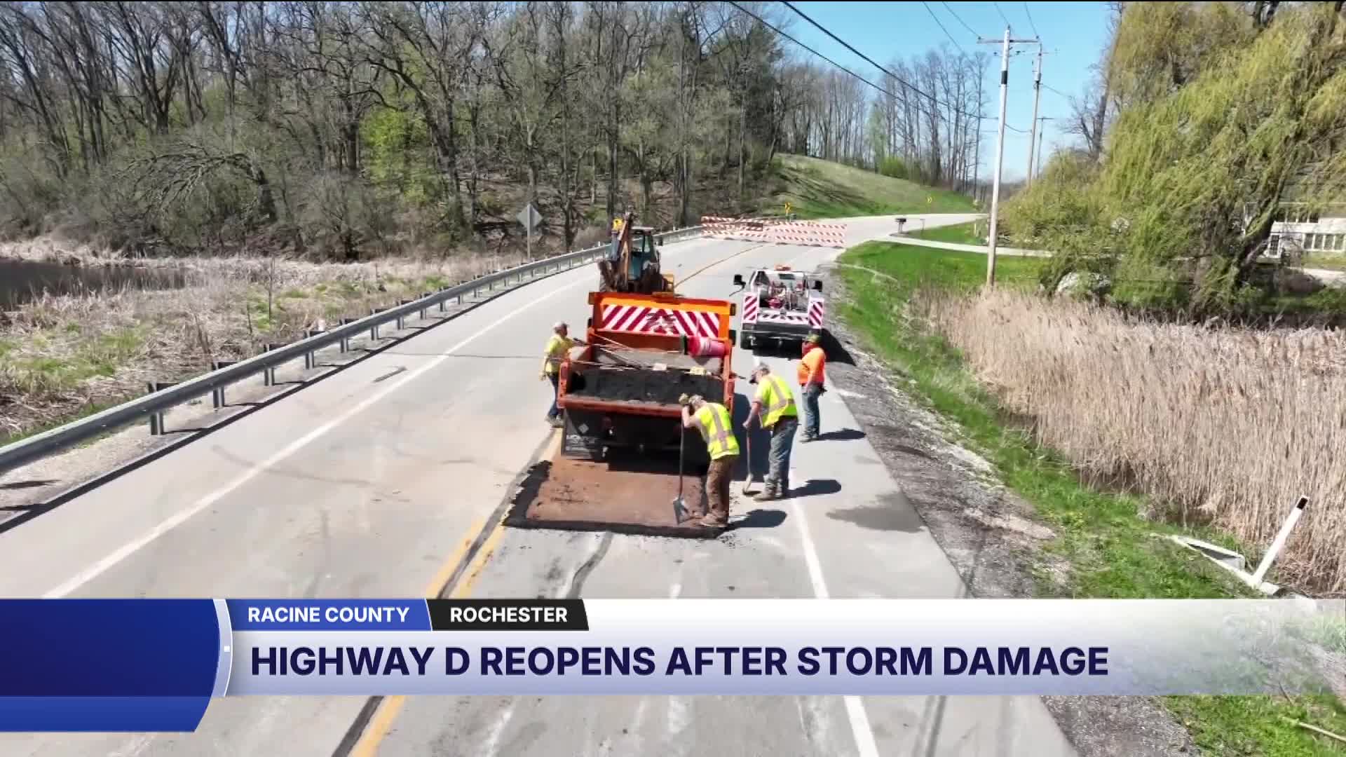 A spokesperson for Racine County said the closure of County Highway D, just west of downtown Rochester, started on Monday. The roadway reopened to traffic midday Wednesday with a temporary fix.