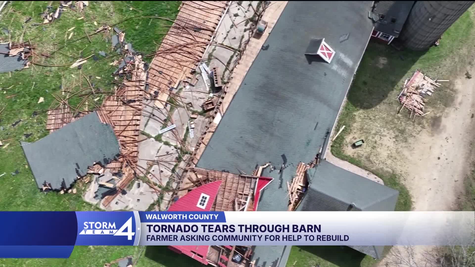 Watch: How one Walworth County man's family is now left to pick up the pieces and rebuild after a tornado tore through their barn.