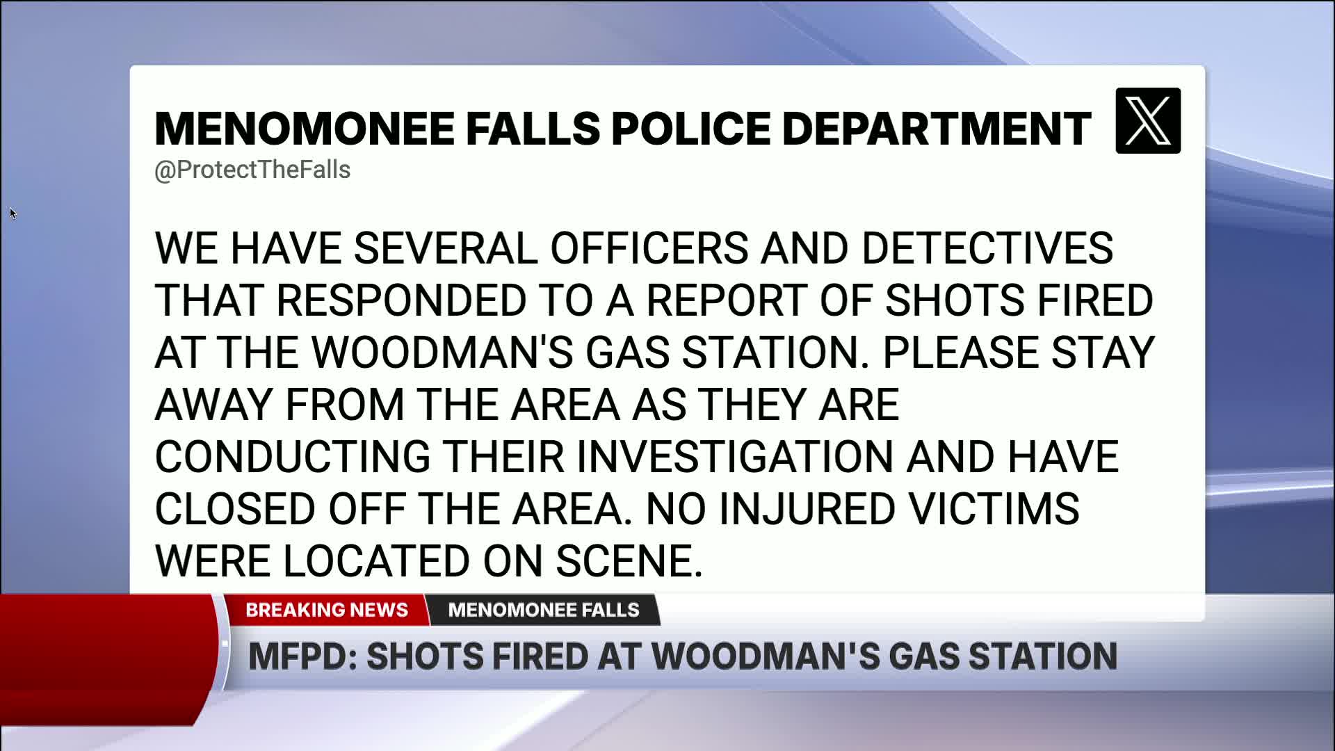 Menomonee Falls police are investigating a "shots fired" call at the Woodman's gas station at W124N8145 Hwy 145.