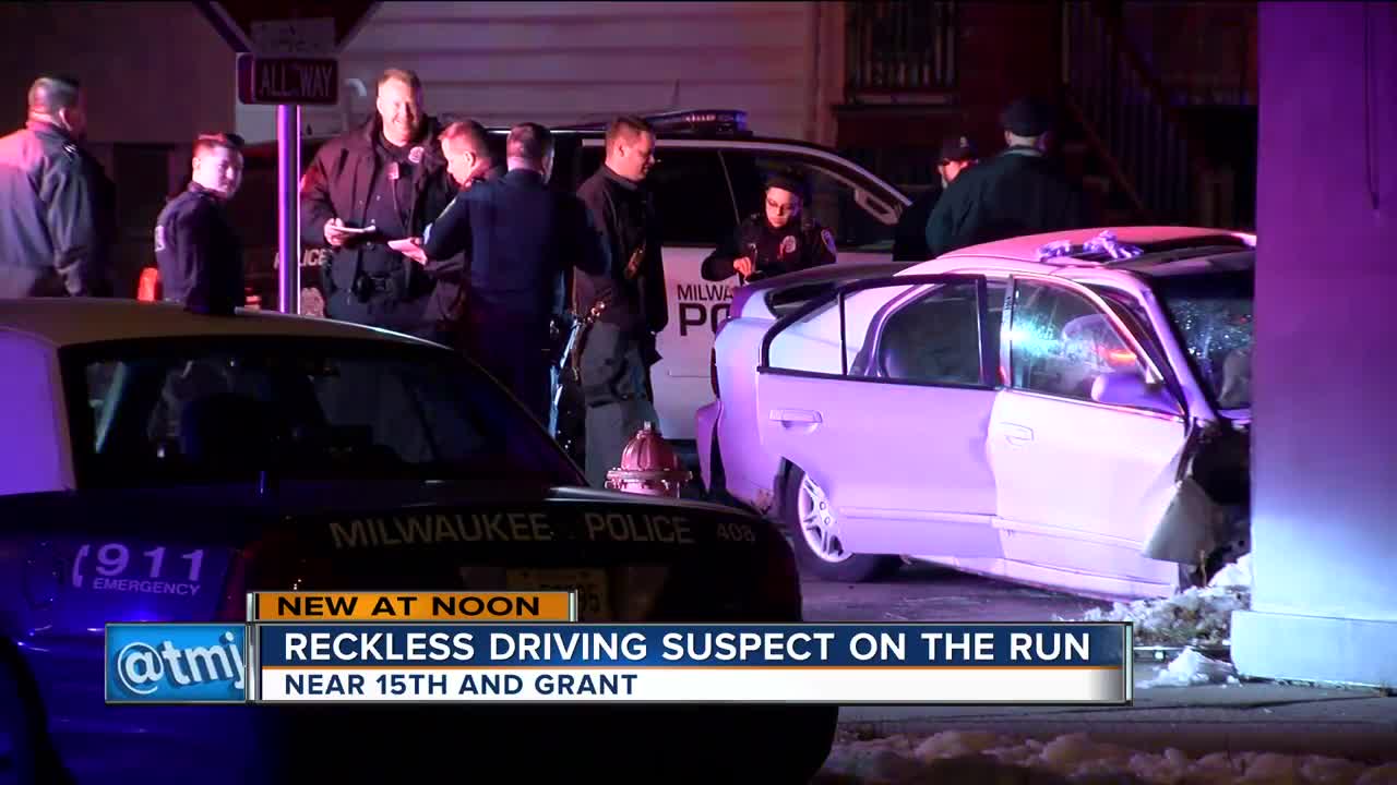 MILWAUKEE — Police say they are still looking for one person after a reckless driving chase ended in a crash on January 30, just after 9:30 p.m. on the city's south side.