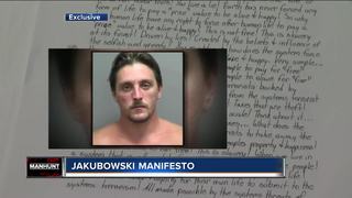 A manifesto police believe Joseph Jakubowski wrote before going on the run provides some telling insights into the mind of a Janesville man suspected of stealing weapons and threatening public officials.
