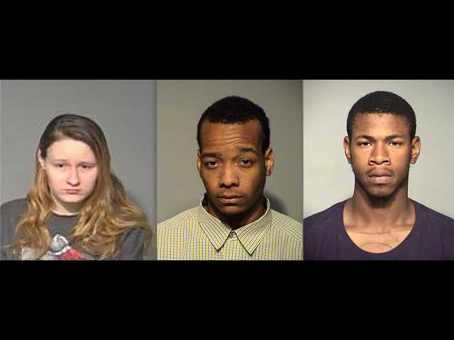 From left to right: Samantha Gustafson, Carl Knight and David McLaurin. Knight has been charged with the murder, and the others have been charged as acomplices.