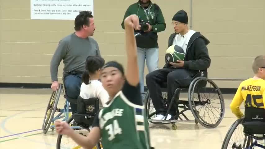 The Milwaukee Bucks partnered with the Wisconsin Adaptive Sports Association for their third consecutive Junior NBA and WNBA wheelchair basketball clinic in Wauwatosa, featuring Bucks guard Ryan Rollins.