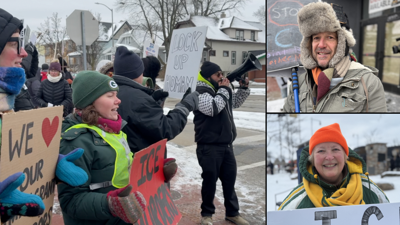 WEST ALLIS — Protesters gathered outside West Allis City Hall on Sunday, braving frigid temperatures for a second day of protests to demonstrate against Immigration and Customs Enforcement (ICE), and show solidarity with the community in Minnesota.