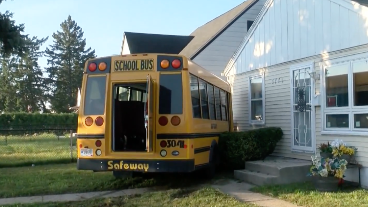 Watch: Driver flees after hitting school bus, causing crash into Milwaukee house