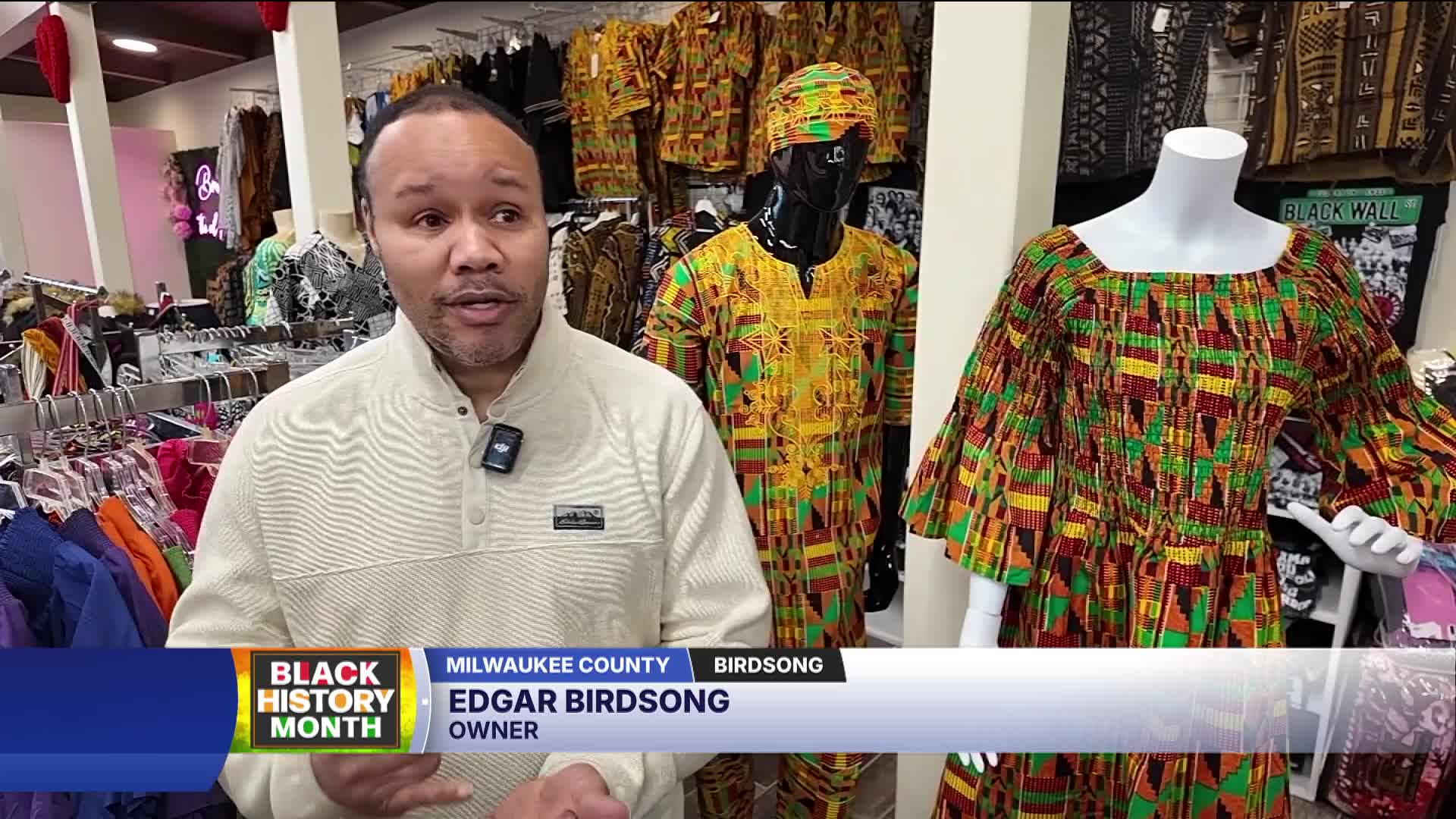 At Birdsong on Milwaukee's north side, located at 4th and North Avenue, the final days of February mean continued celebration and cultural pride. The store has become a destination for African garments, headwraps, jewelry, and Black History Month merchandise.