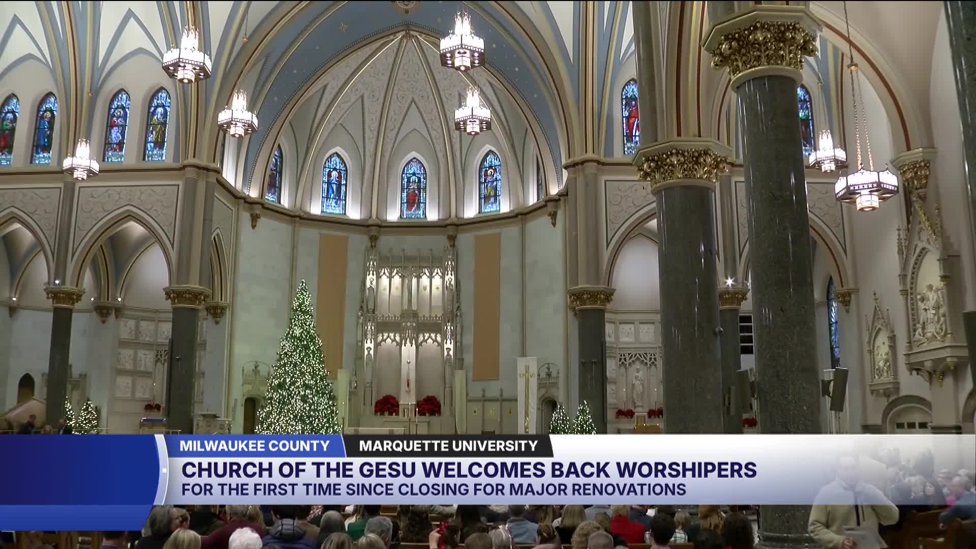 MILWAUKEE — The Church of the Gesu on Marquette University's campus welcomed worshipers back Wednesday for the first time since completing a major renovation, marking a special homecoming on Christmas Eve.