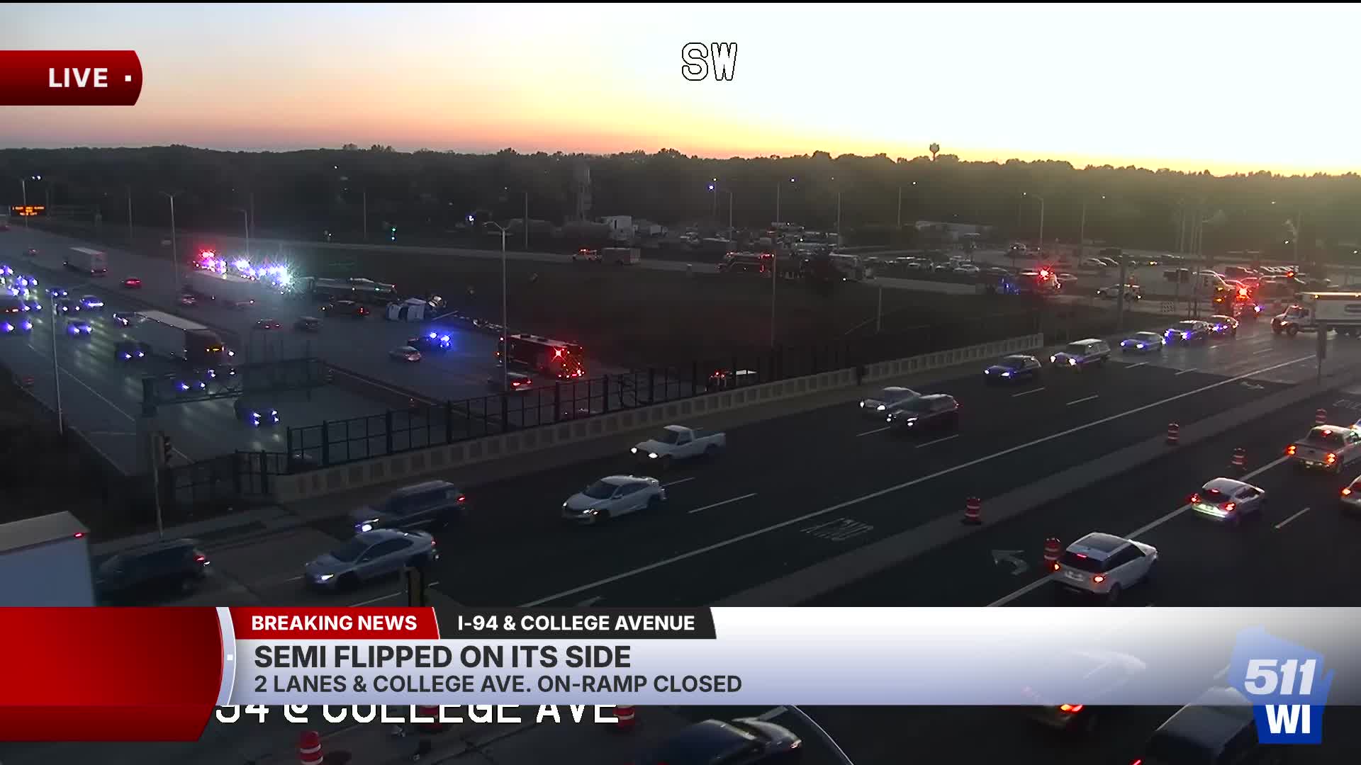 MILWAUKEE — A hit-and-run crash involving two semi-trucks caused major traffic backups on Interstate 94 near College Avenue around 1 p.m. Wednesday.
