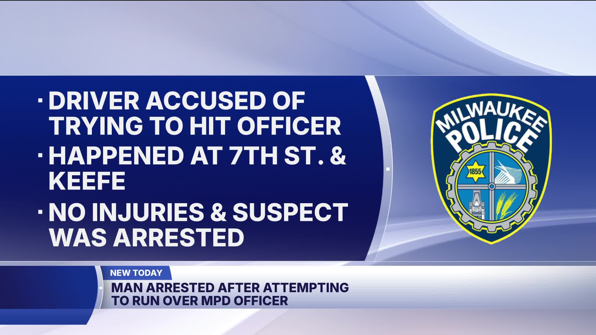 MILWAUKEE — A 38-year-old man was arrested after allegedly attempting to run over a Milwaukee police officer in the District 5 parking lot on Monday night, according to police.