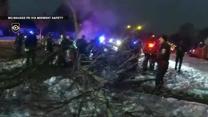 "Looks like crash crash crash crash! 82 and Burleigh, 82 and Burleigh! Send medical! Into a tree! Car is on fire," said one officer on his body camera footage, obtained through TMJ4's partners at Midwest Safety.