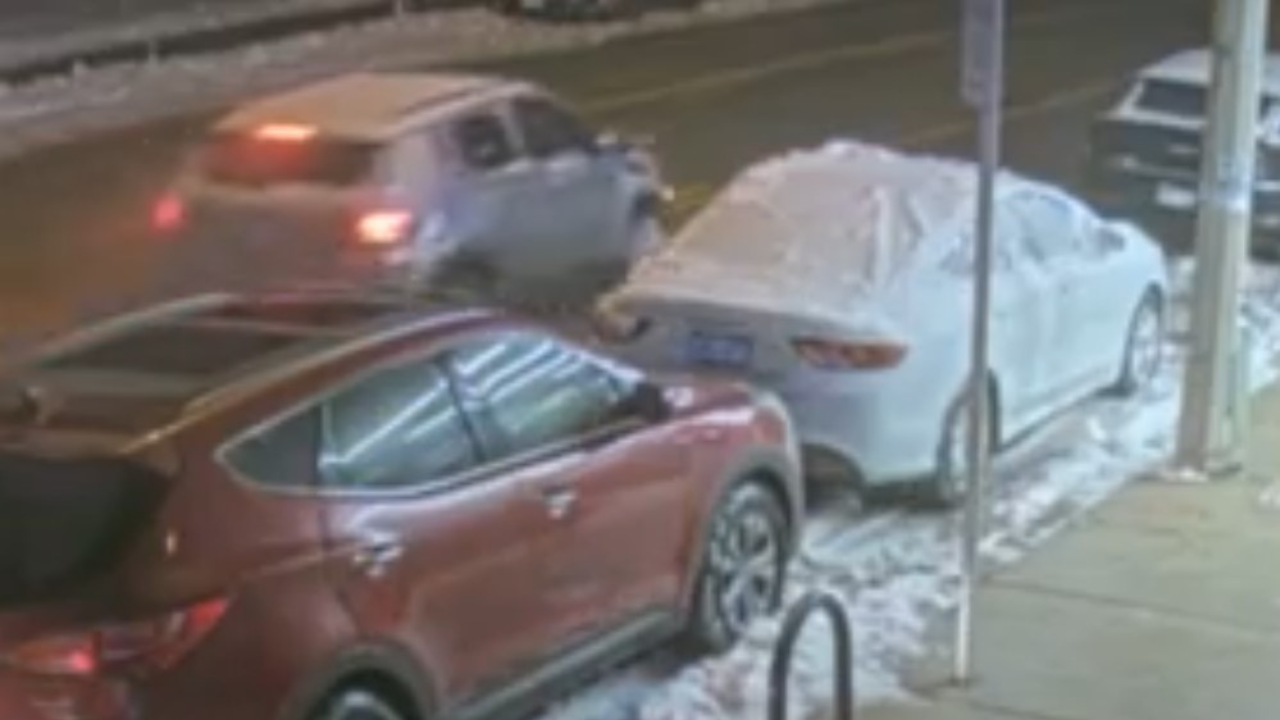 Police say the driver struck a person who had just exited their vehicle and then took off. Surveillance video and vehicle debris left at the scene suggest the vehicle is a second-generation Jeep Compass Latitude, according to police.