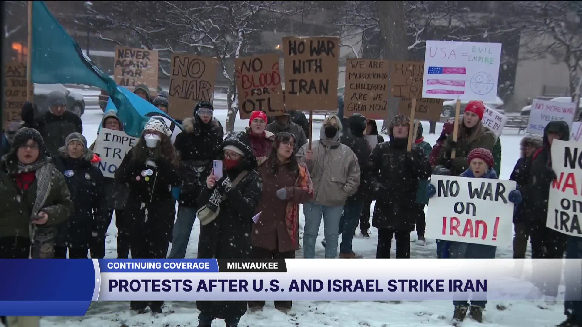 Despite snow and cold temperatures, dozens of Milwaukee residents turned out for two separate protests after learning about U.S. military strikes on Iran. Both demonstrations drew crowds opposed to military action in the region.