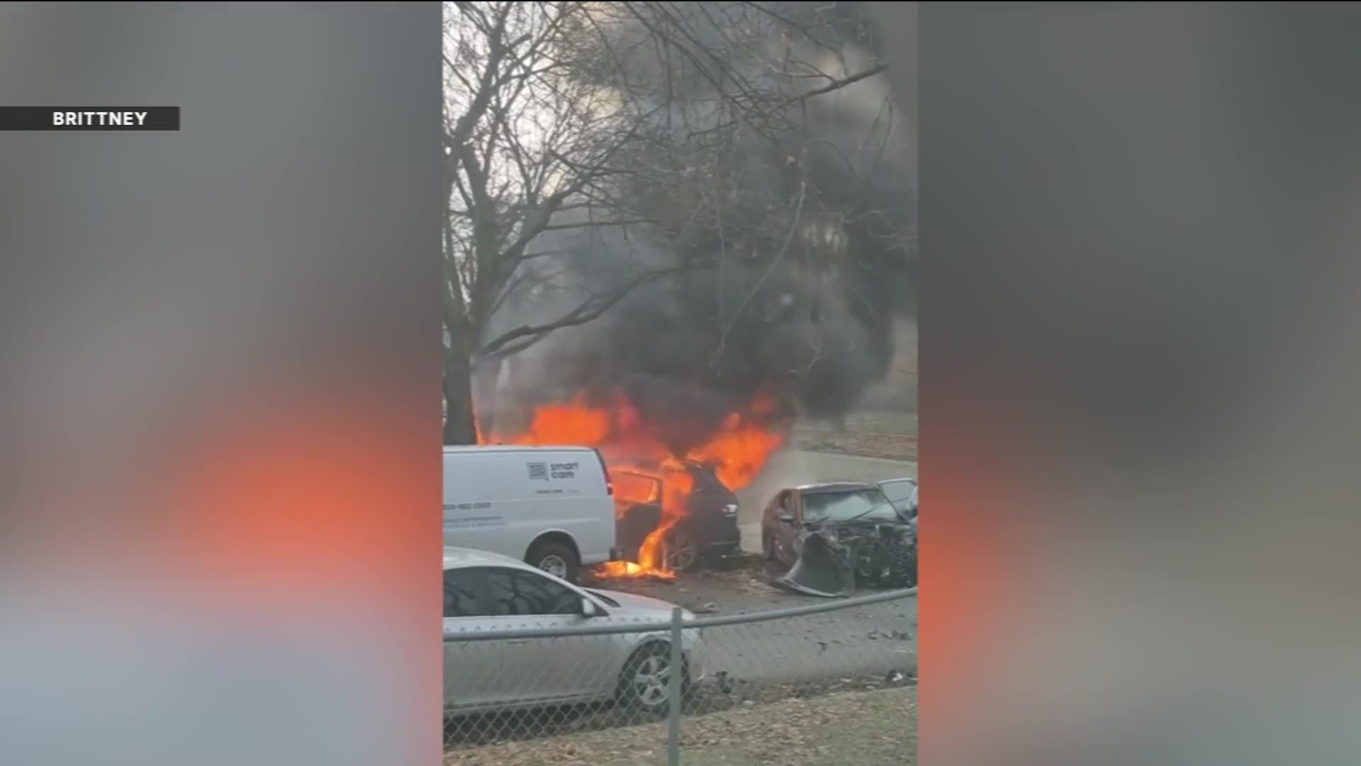 The crash happened at North 68th and Fiebrantz Avenue, where dramatic video captured by a witness shows flames shooting from a silver SUV in the aftermath of the collision.