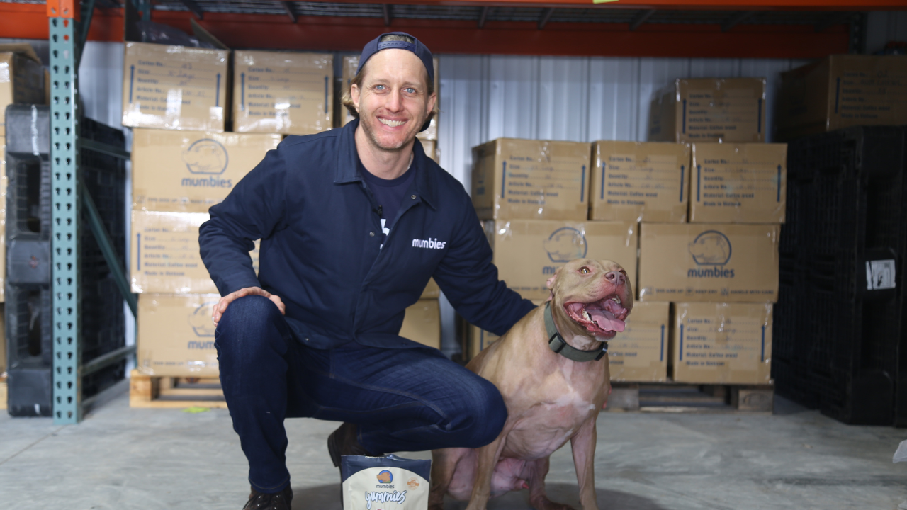 Will started the company after looking for alternative toys for his dog. Mumble could chew through just about anything. That's when Will experimented with a type of wood called coffee wood. Mumble loved it. That's how Mumbies was born. All of the toys are made with upcycled coffee wood. For the dog that can bite through anything, this is for them. And customers love it.