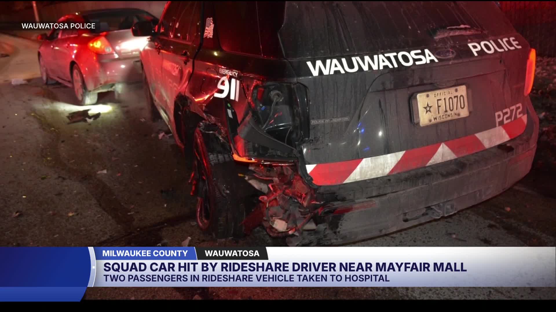 The first occurred about 6:05 p.m. in the 2700 block of Mayfair Road when a squad car attempting a traffic stop was rear-ended by a rideshare vehicle. According to the Wauwatosa Police Department, the squad car had its lights on at the time.