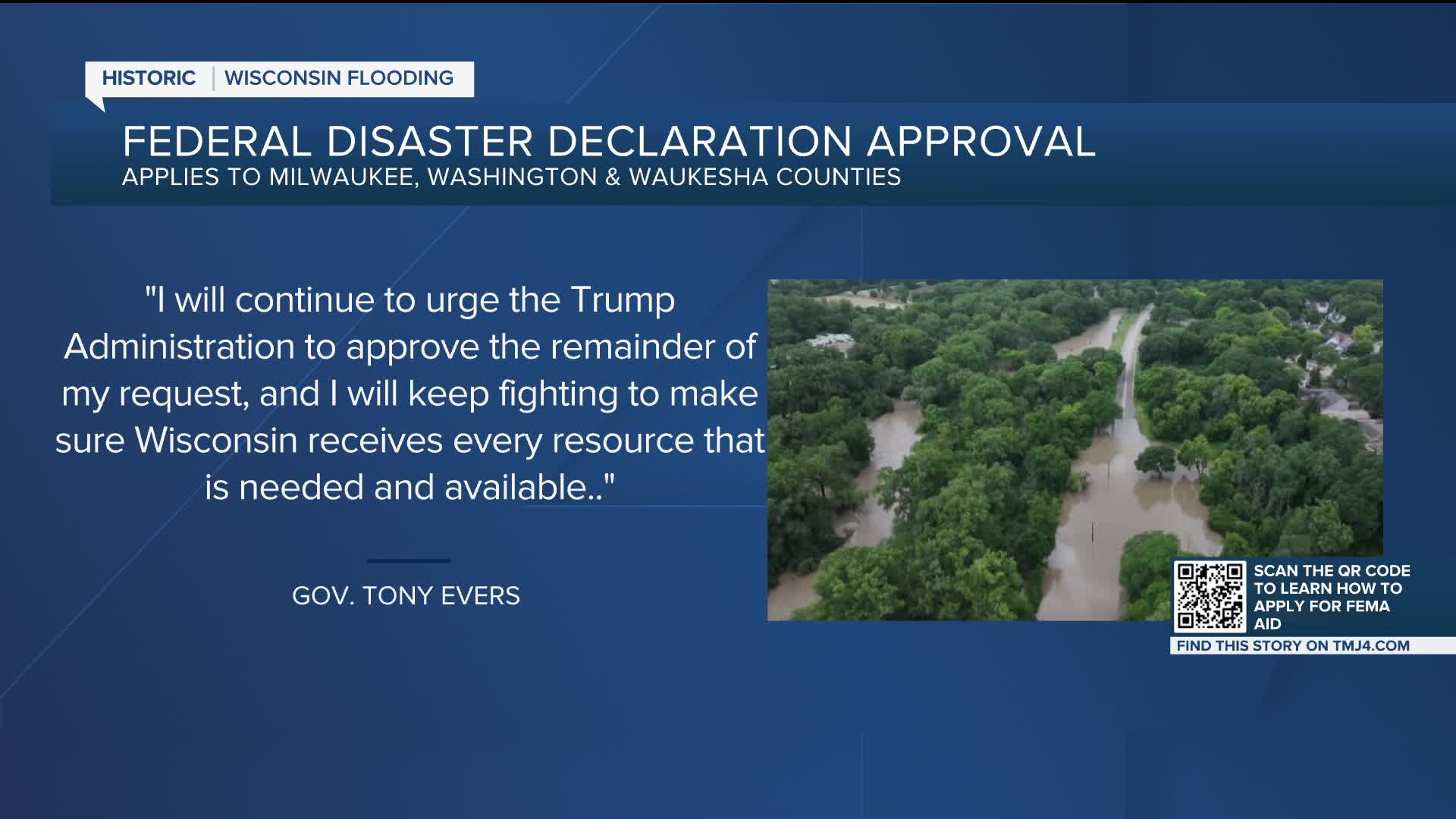MADISON, Wis. — Gov. Tony Evers on Thursday received official notice that the Trump Administration approved the request for a major disaster declaration for counties impacted by recent severe storms and flooding.