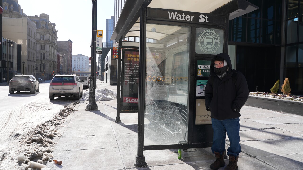 Erickson just moved back to Milwaukee after a couple of years away, and between the empty stops and the bitter cold, it wasn't exactly a warm welcome. He was headed to work just down the street — a short drive for most, but without a car, the bus is his only option.