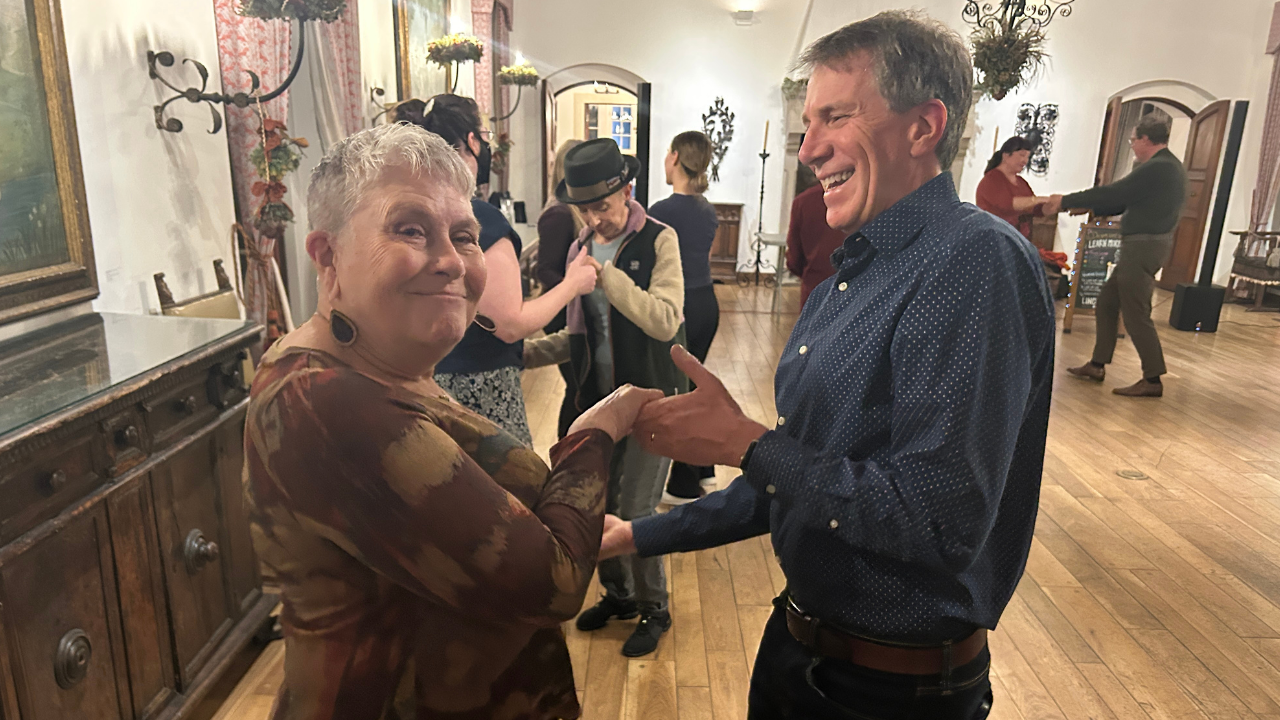 The classes at the Villa Terrace begin with an instructional portion from 6:30 pm to 7:30 pm. Then there is an open social dance until 8:30 pm. It's hosted by Paté Nassalang, who founded Lindy Hop MKE and is a professional dancer. His co-instructor is Lisa Black, who is active in the swing and lindy hop community.