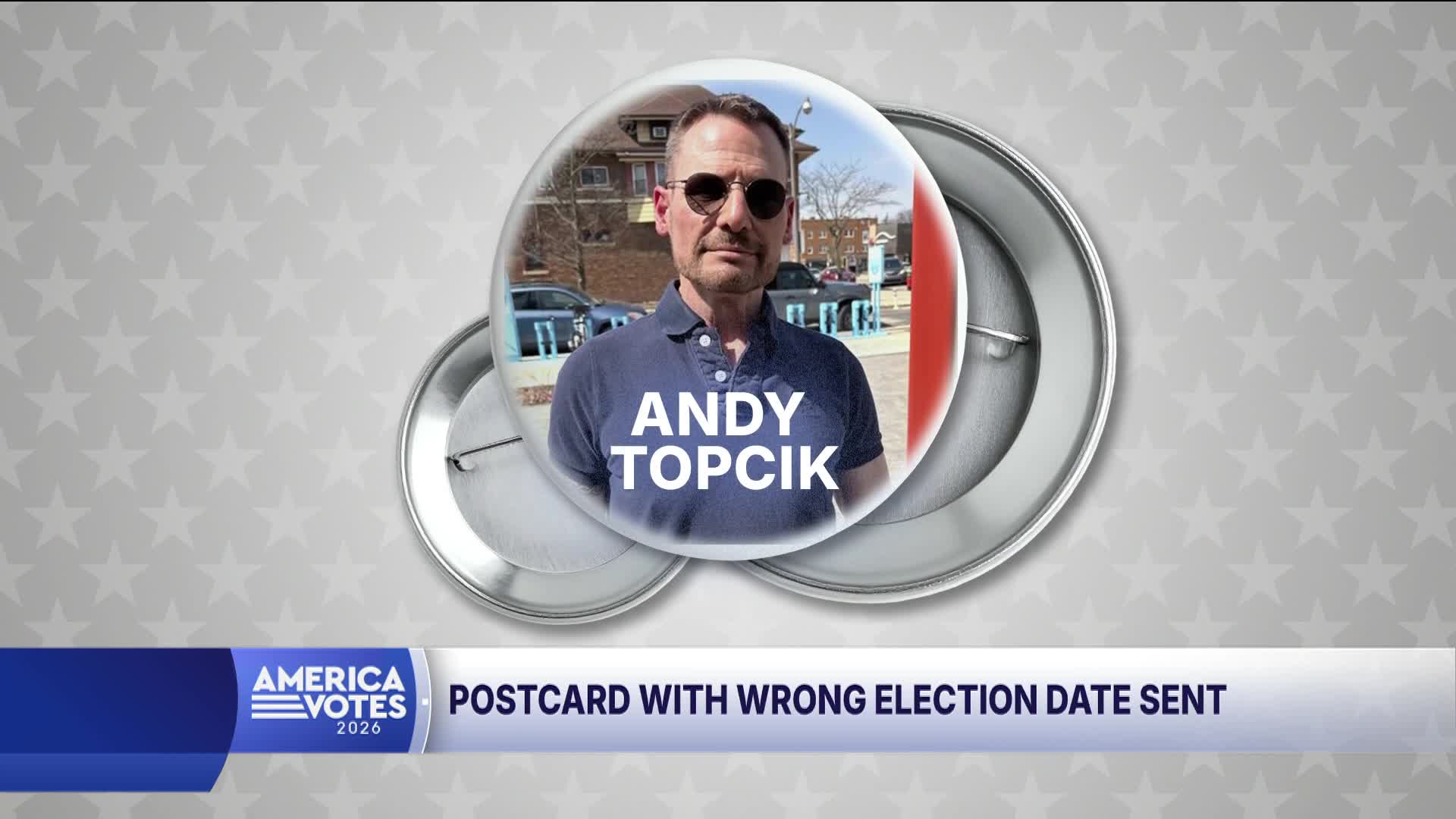 Topcik noticed the glaring mistake right away. He said the date was prominent on the front of the postcard and described it as surreal. Topcik is an avid voter and wanted to get the word out in case others received the wrong information.