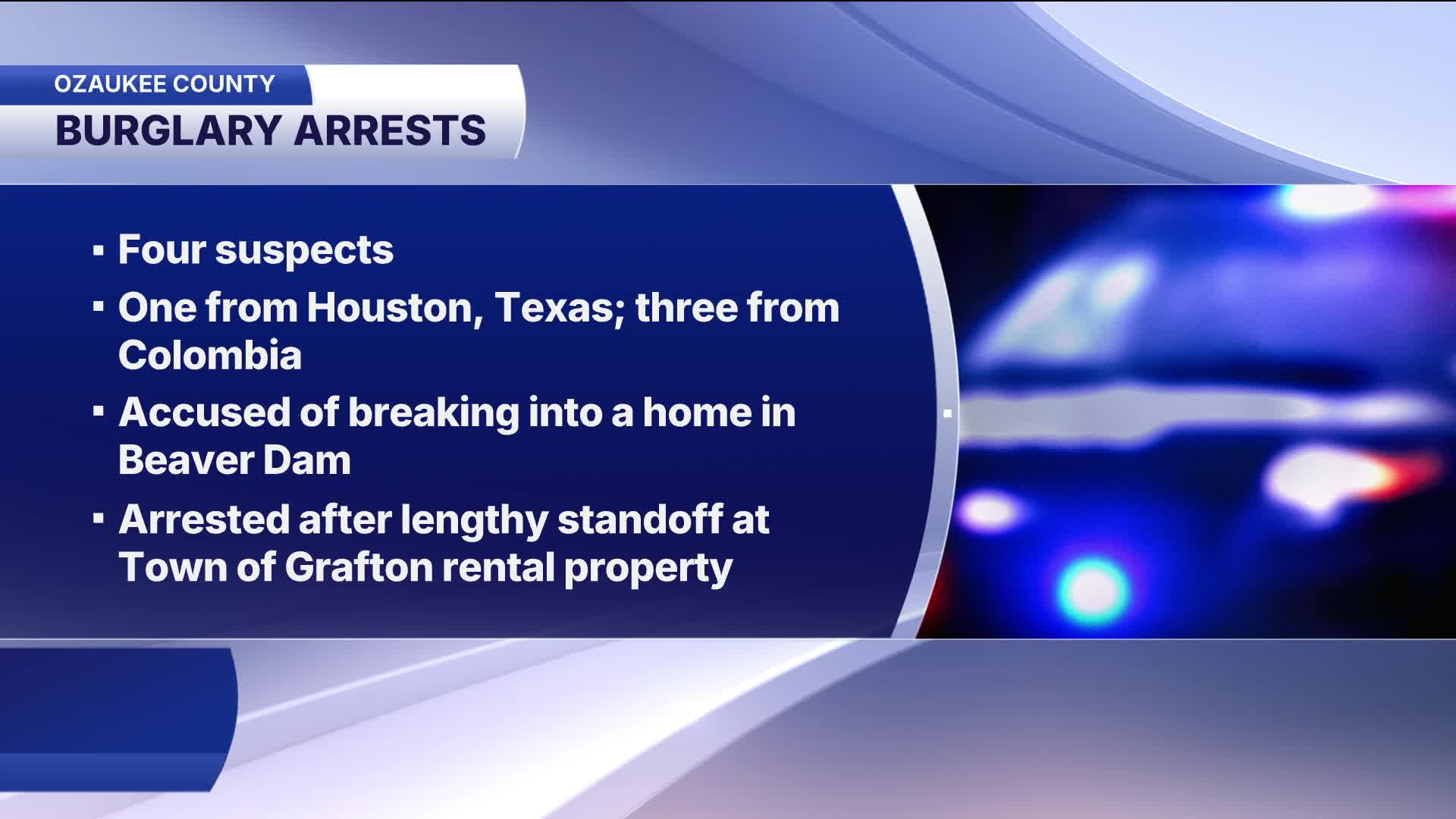 GRAFTON, Wis. — A burglary investigation and tactical incident in the Town of Grafton led to the arrest of four people believed to be part of a group targeting Asian business owners throughout the Midwest, dating as far back as 2023.