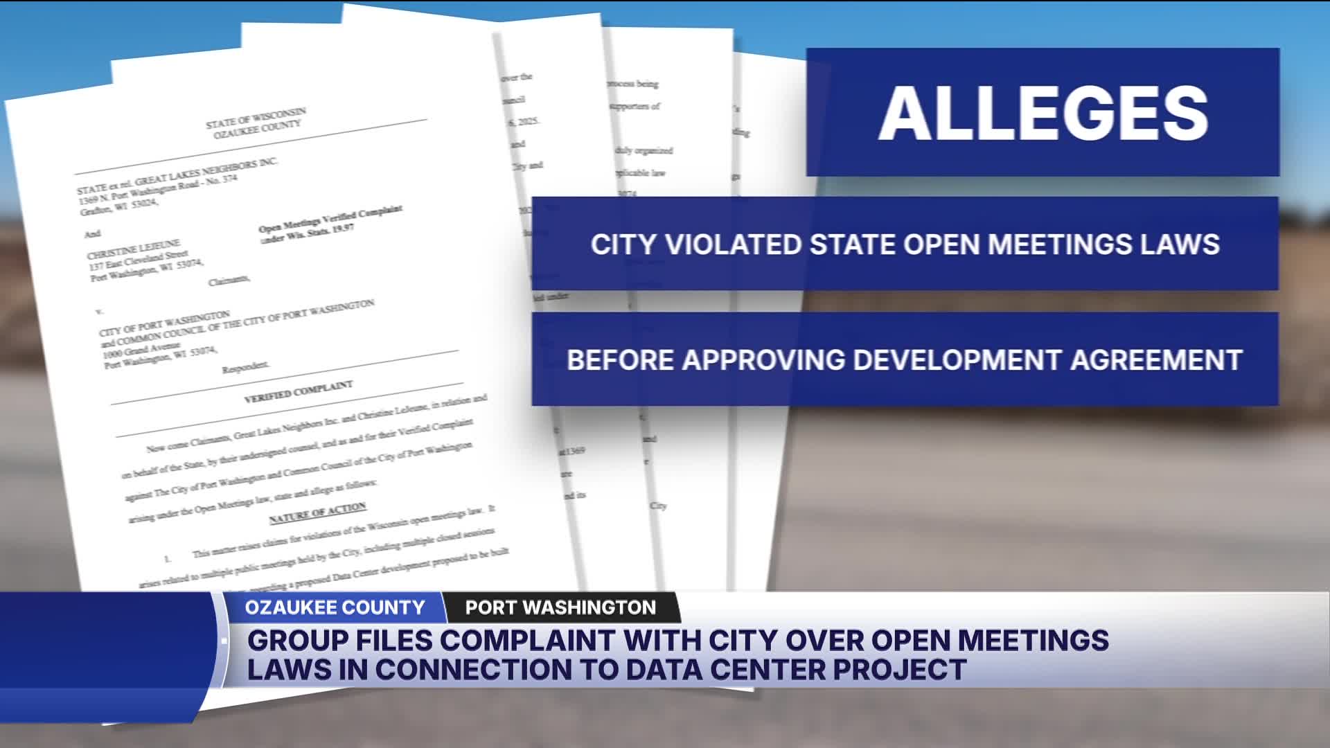 A local neighbor group has filed a complaint alleging Port Washington violated open meetings laws when approving a massive data center development, while the city calls the accusations "blatantly inaccurate."