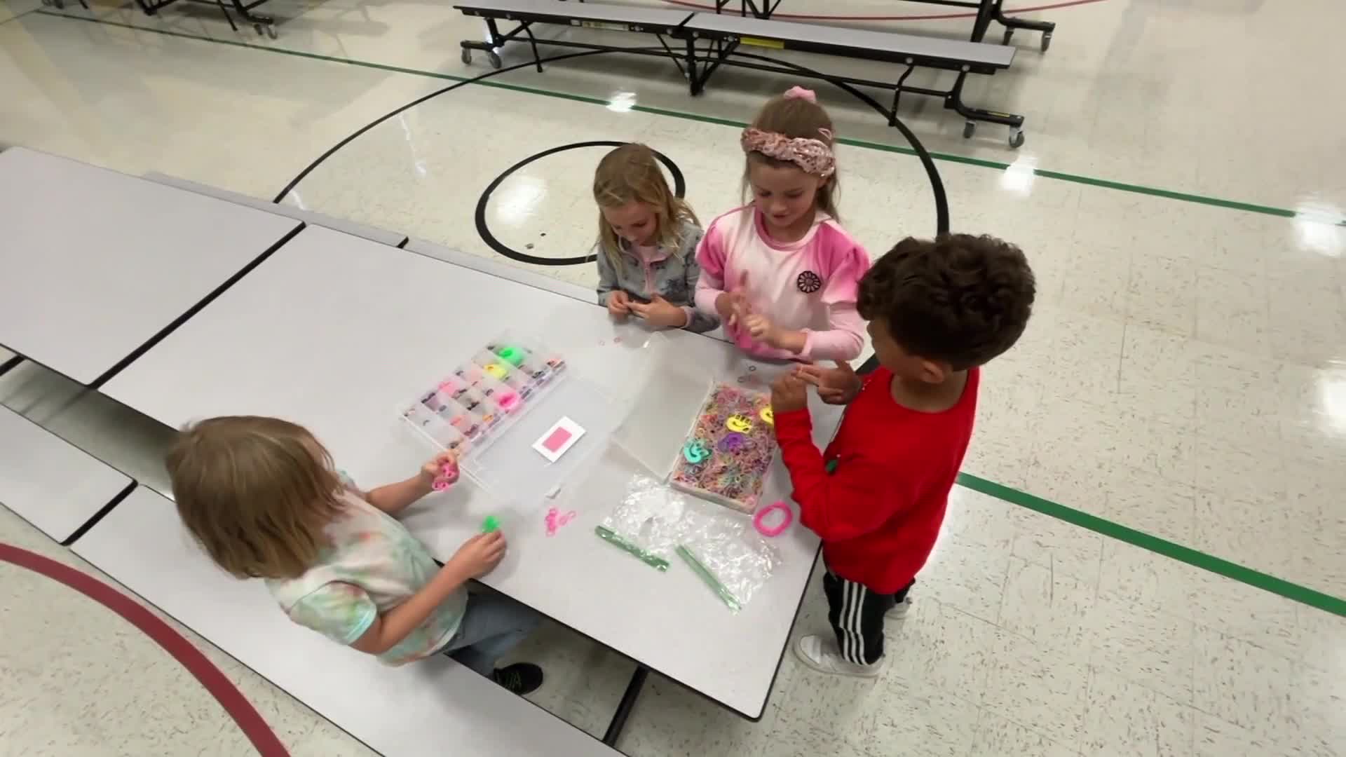 Every day after school, the students have been creating rubber band bracelets in the school's gymnasium. What started as a fun activity quickly became a serious fundraising effort.