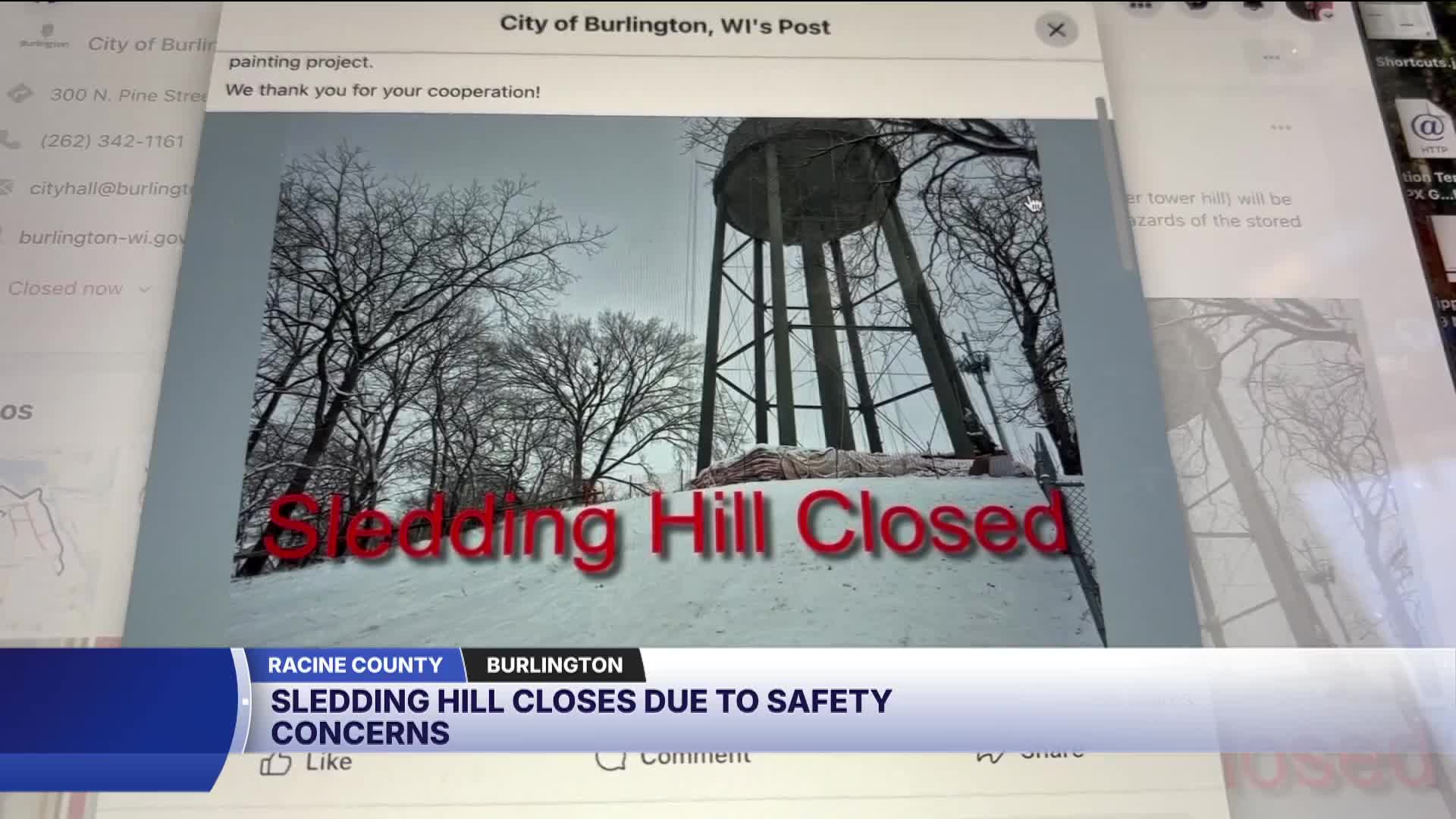 The city shut down the hill because of a water tower painting project that began in late summer. The project was expected to finish before winter but faced delays, leaving painting supplies and equipment stored near the sledding area.