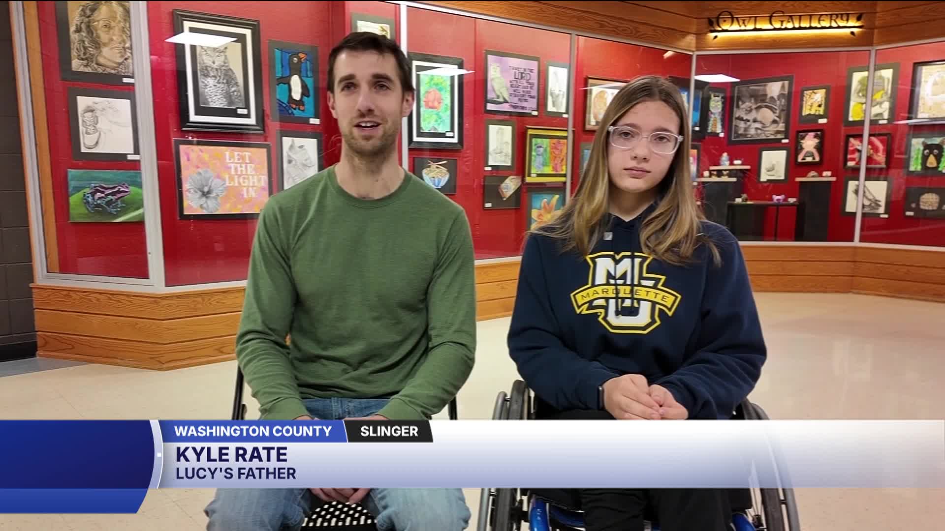 Lucy Rate, who was born with arthrogryposis — a condition that limits bending, growth, and full movement in her limbs — plays for the Wisconsin Adaptive Sports Association's co-ed wheelchair basketball team, known as WASA. Last year, she and her teammates became the first all-female prep team to win nationals—it's a coed league, but she said her team happened to be all females.