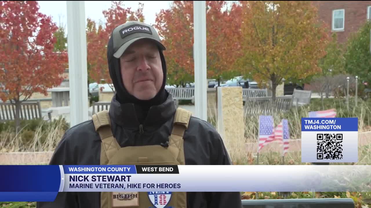 KEWASKUM, Wis. — Ahead of Veterans Day, on the Marine Corps' 250th birthday, Iraq combat war veteran Nick Stewart is hiking for 25 hours straight across Washington County.