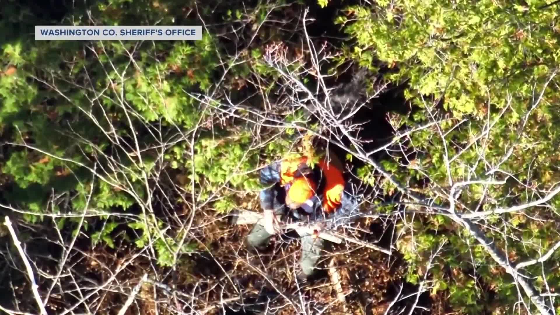 Drone video from Sunday showed the moment the Washington County Sheriff's Office located a man in his 70s who was out hunting, experiencing low blood sugar, lost and alone with his dog.