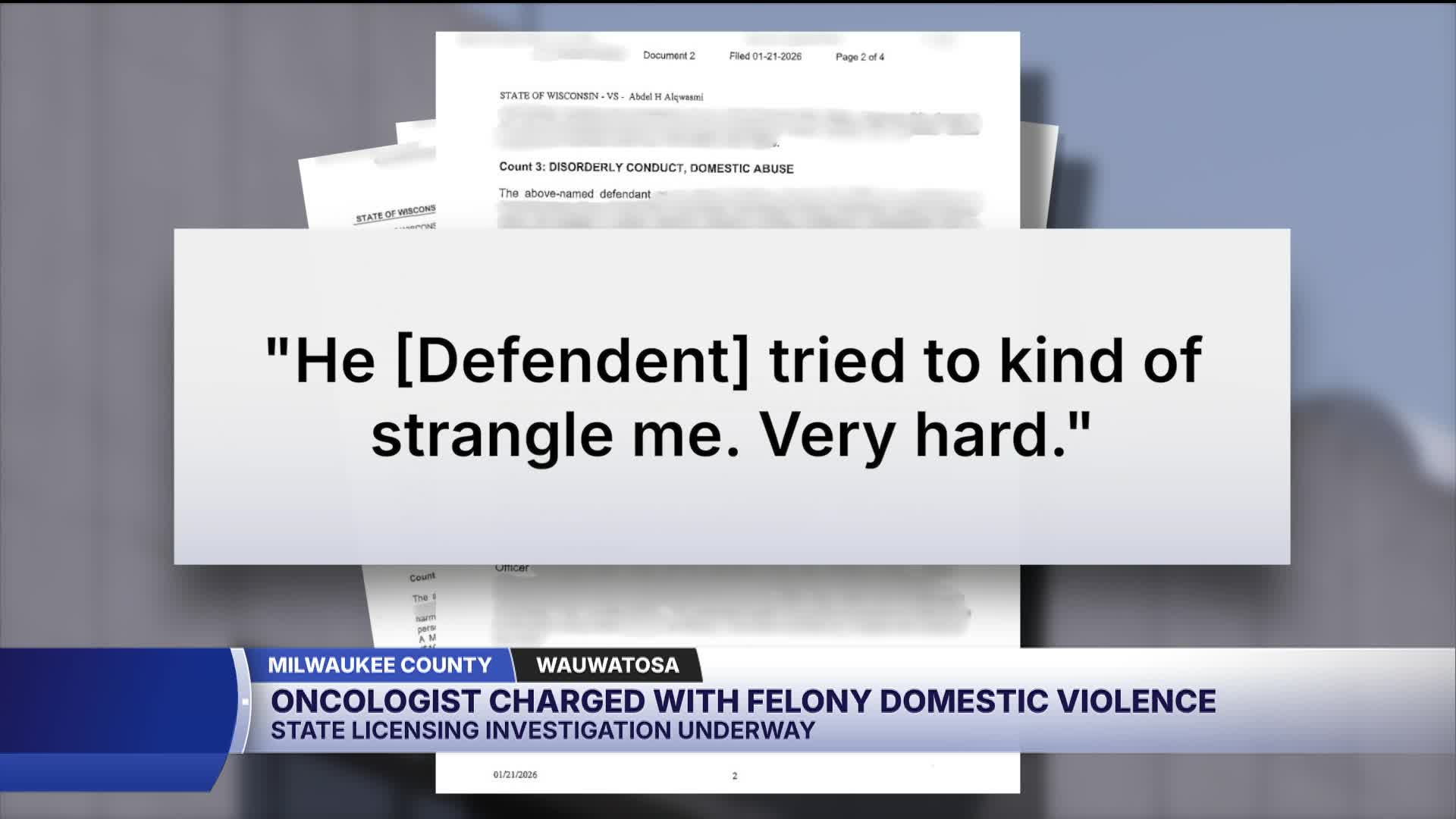 Court records show Brookfield doctor, Abdel Alqwasmi, has been charged with a felony for domestic violence, strangulation, and suffocation.