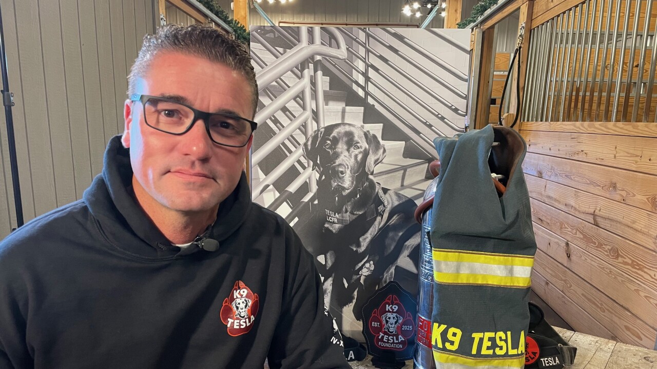 Watch: Assistant fire chief retires to launch foundation after therapy dog's death