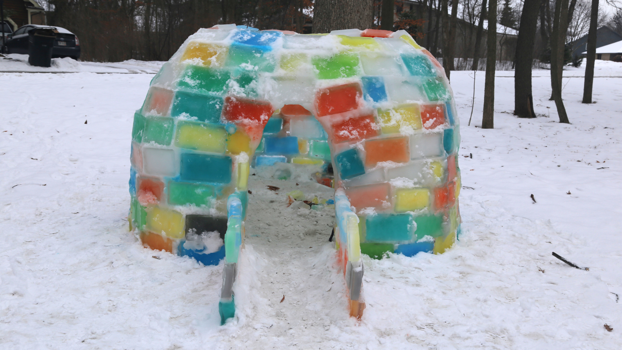 Or, I guess it’s more appropriate to say the award goes to the family that built this rainbow colored igloo.