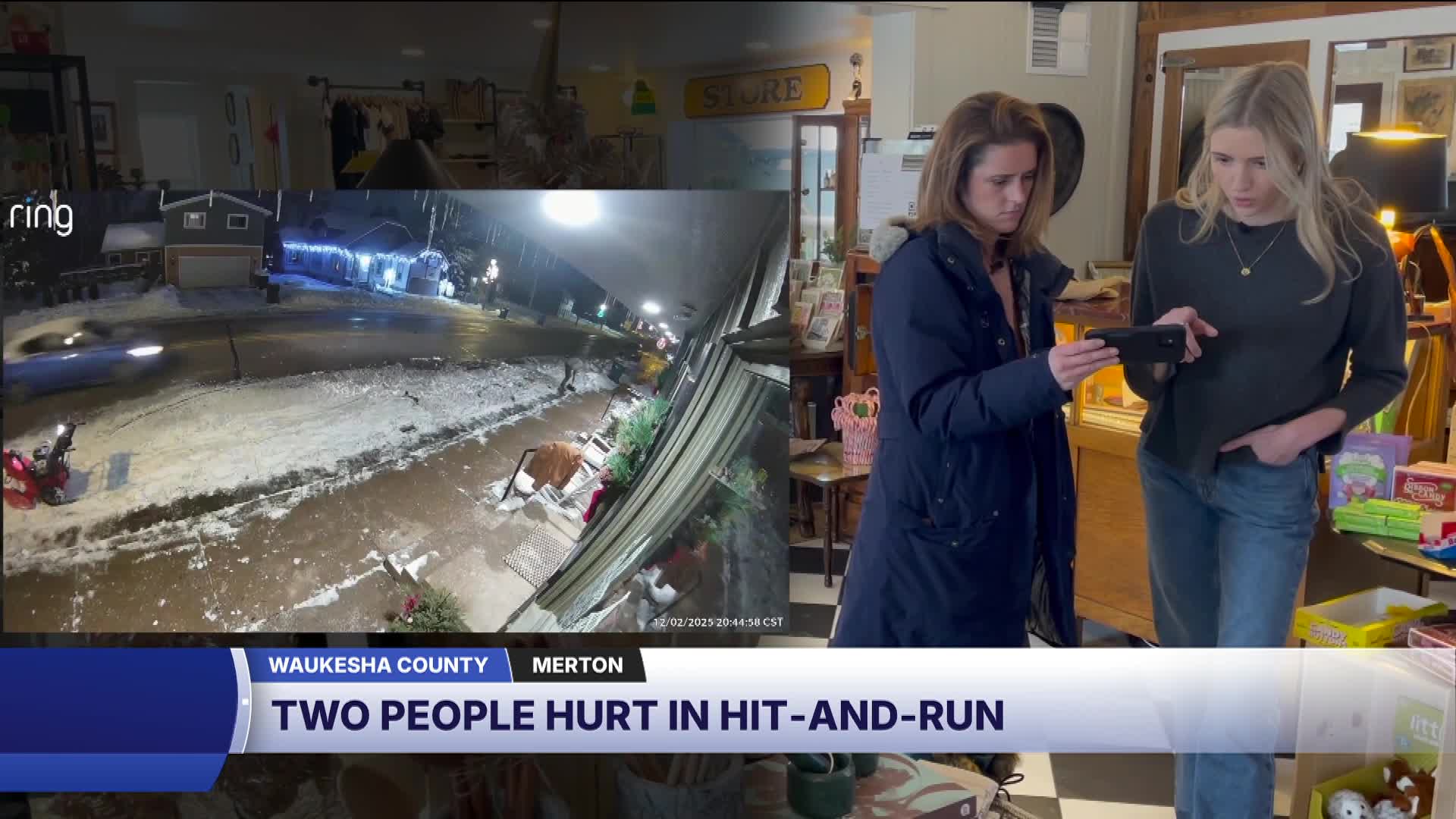 The Waukesha County Sheriff's Office says the blue sedan hit the couple and then drove away. Security cameras at nearby Folklore Mercantile captured footage of the vehicle fleeing the scene.
