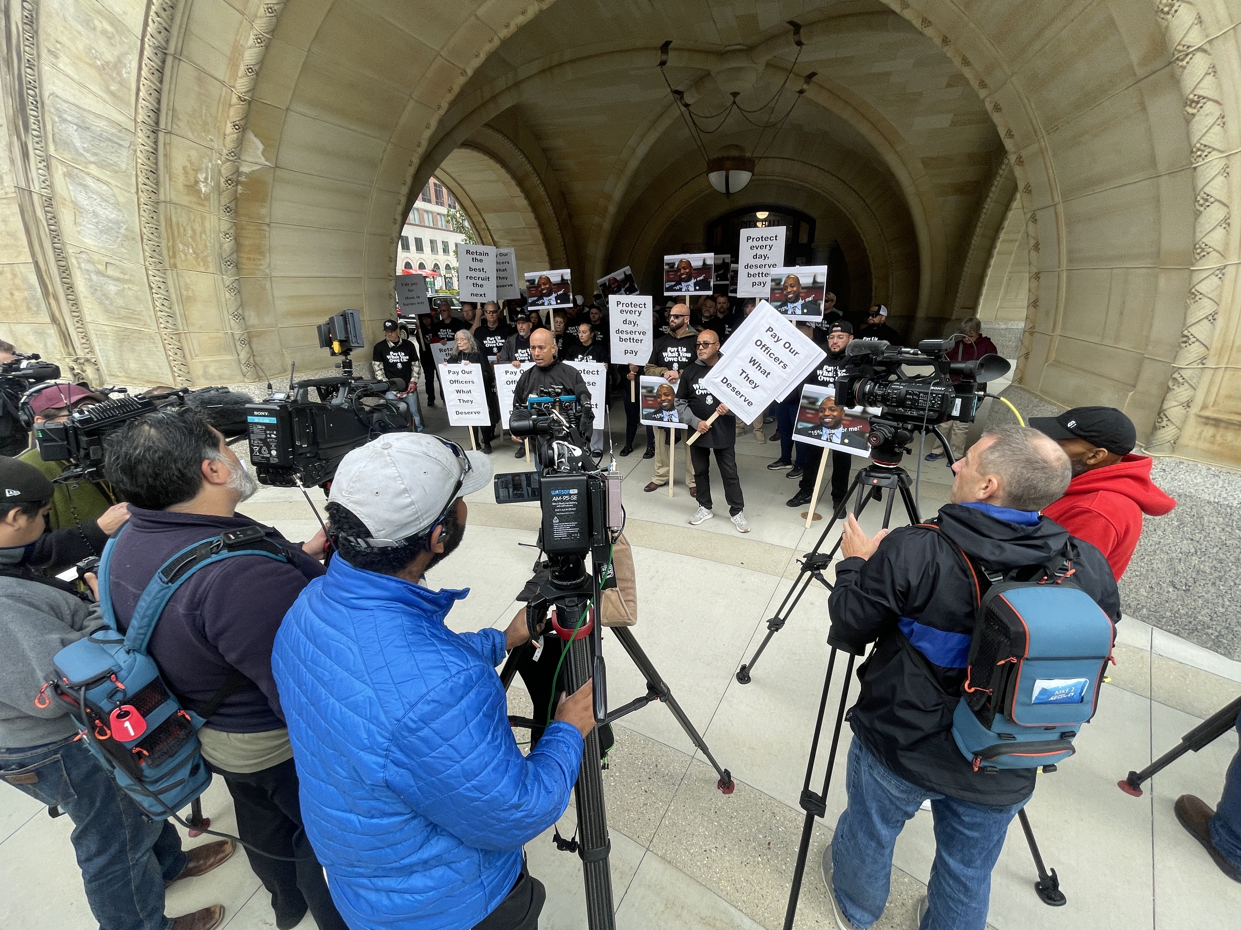 Dueling protests clash at Milwaukee City Hall over police pay raises