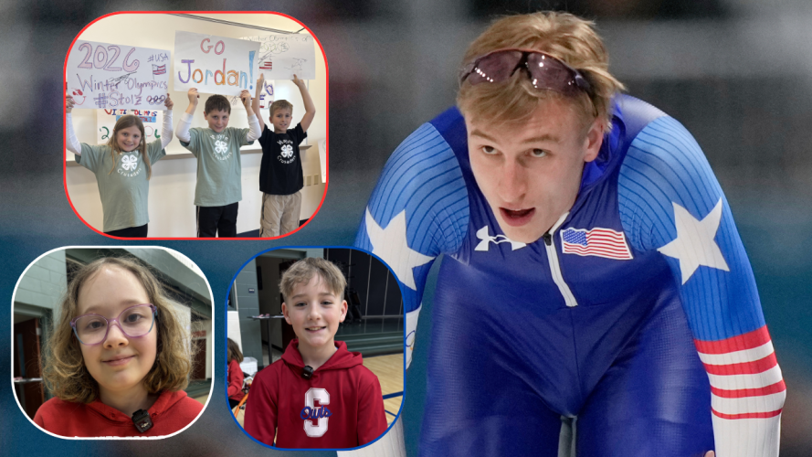 Watch: Washington County kids cheer on Olympic speed skater Jordan Stolz despite silver finish