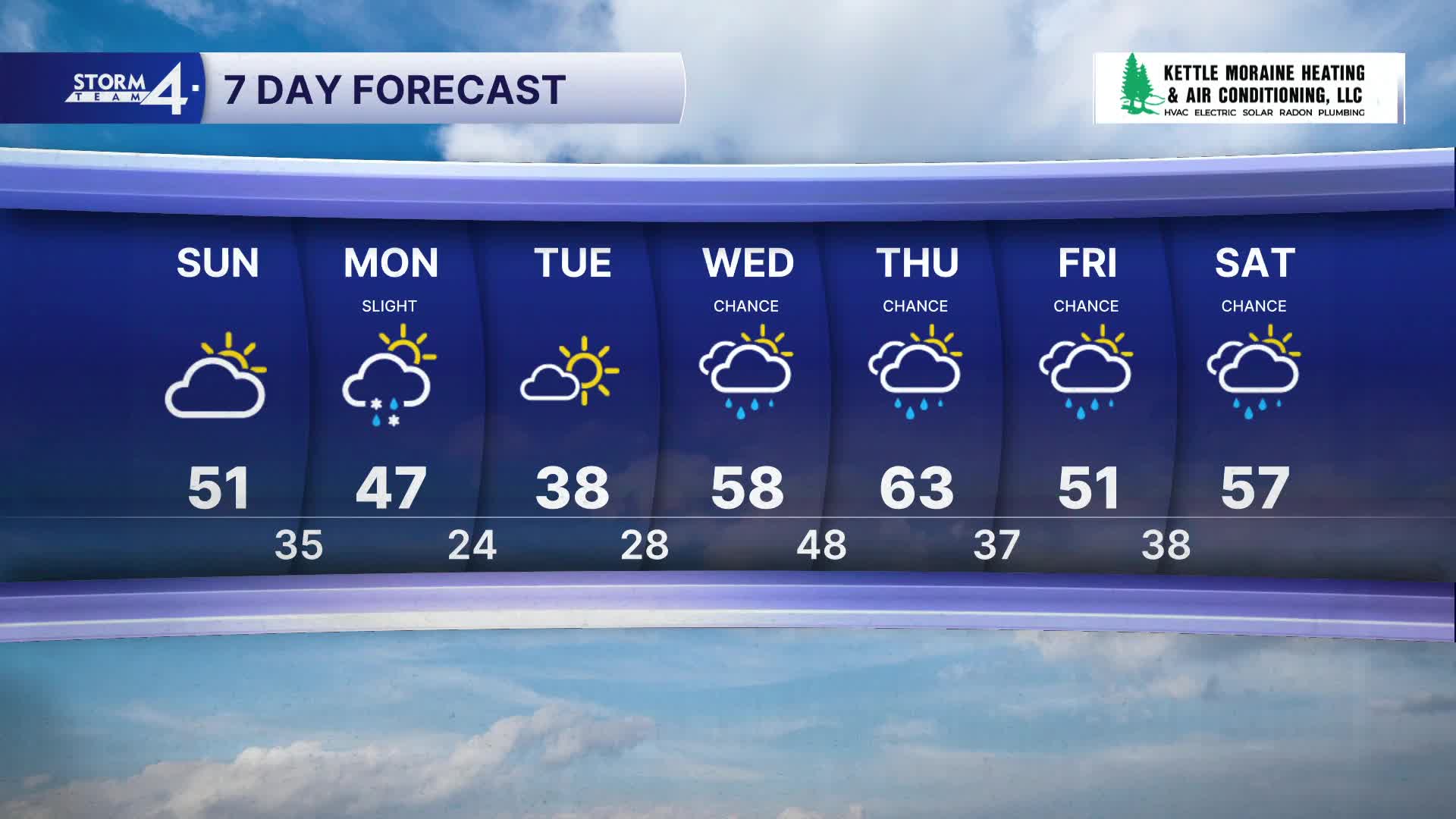 Tuesday will be a sunny, but cool day with highs only in the upper 30s.